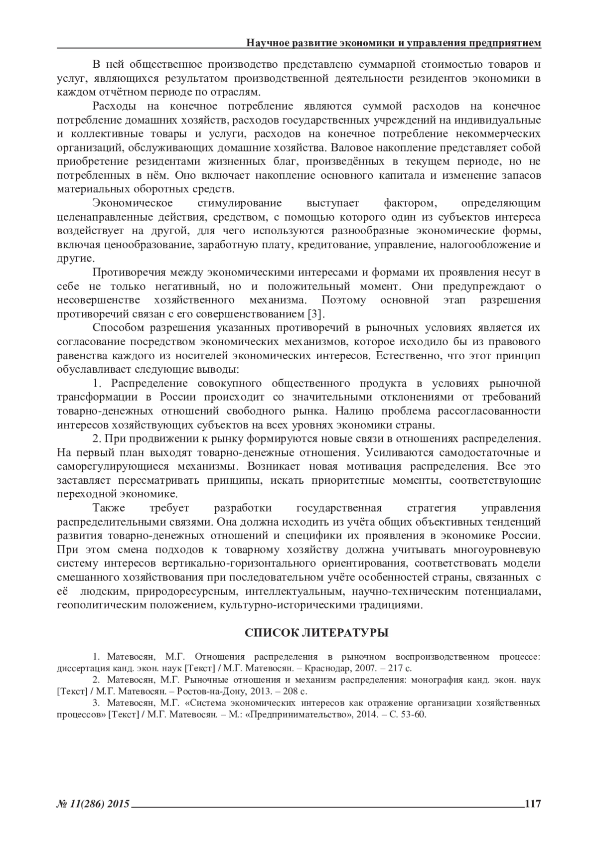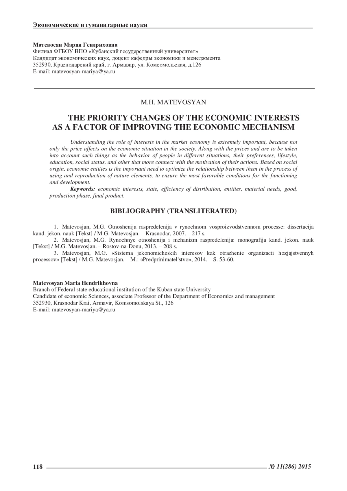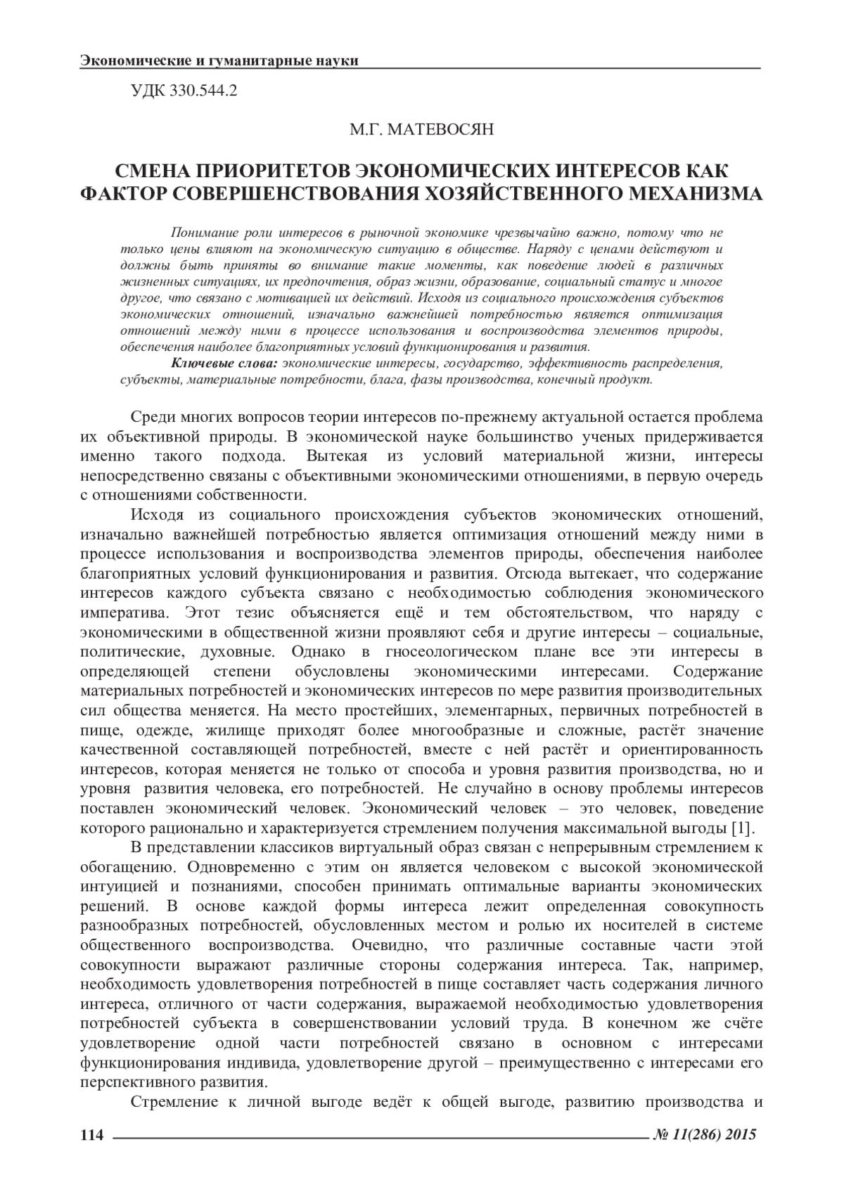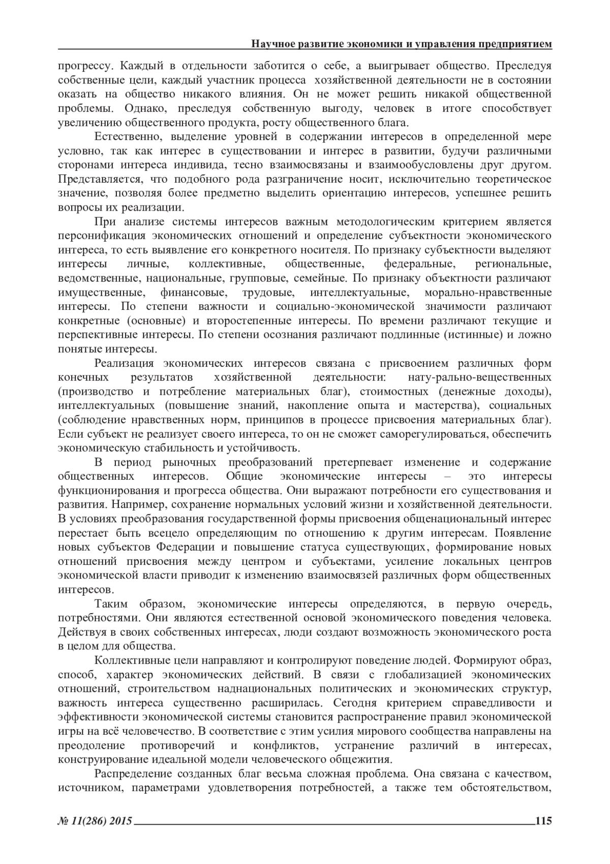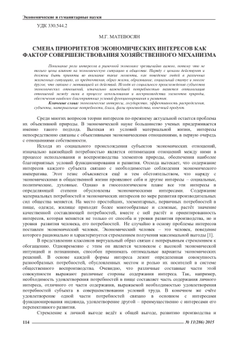Статья: СМЕНА ПРИОРИТЕТОВ ЭКОНОМИЧЕСКИХ ИНТЕРЕСОВ КАК ФАКТОР СОВЕРШЕНСТВОВАНИЯ ХОЗЯЙСТВЕННОГО МЕХАНИЗМА (2015)