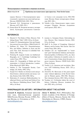 13. Дэвид-Фокс М. Витрины великого эксперимента. Культурная дипломатия Советского Союза и его западные гости, 1921-1941 годы. Москва: Новое литературное обозрение; 2015. 568 c.