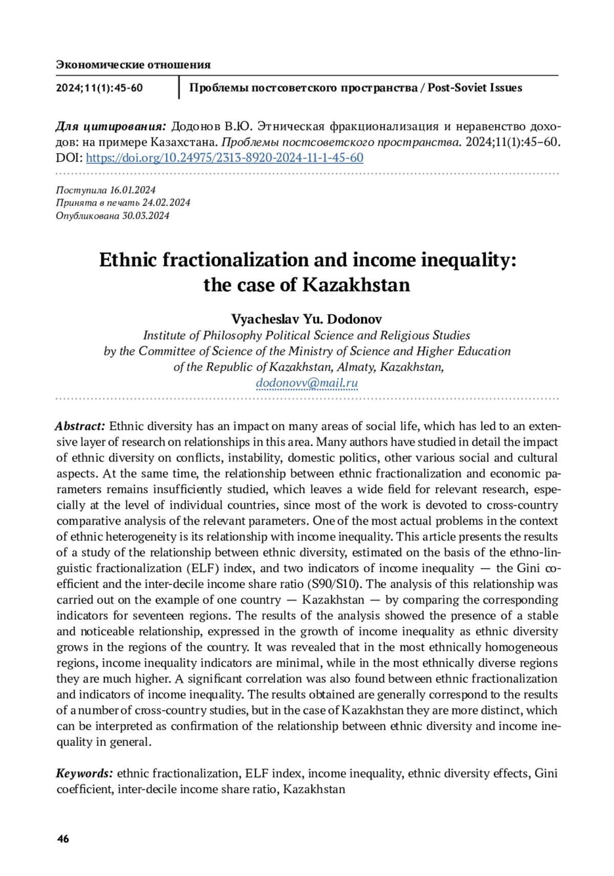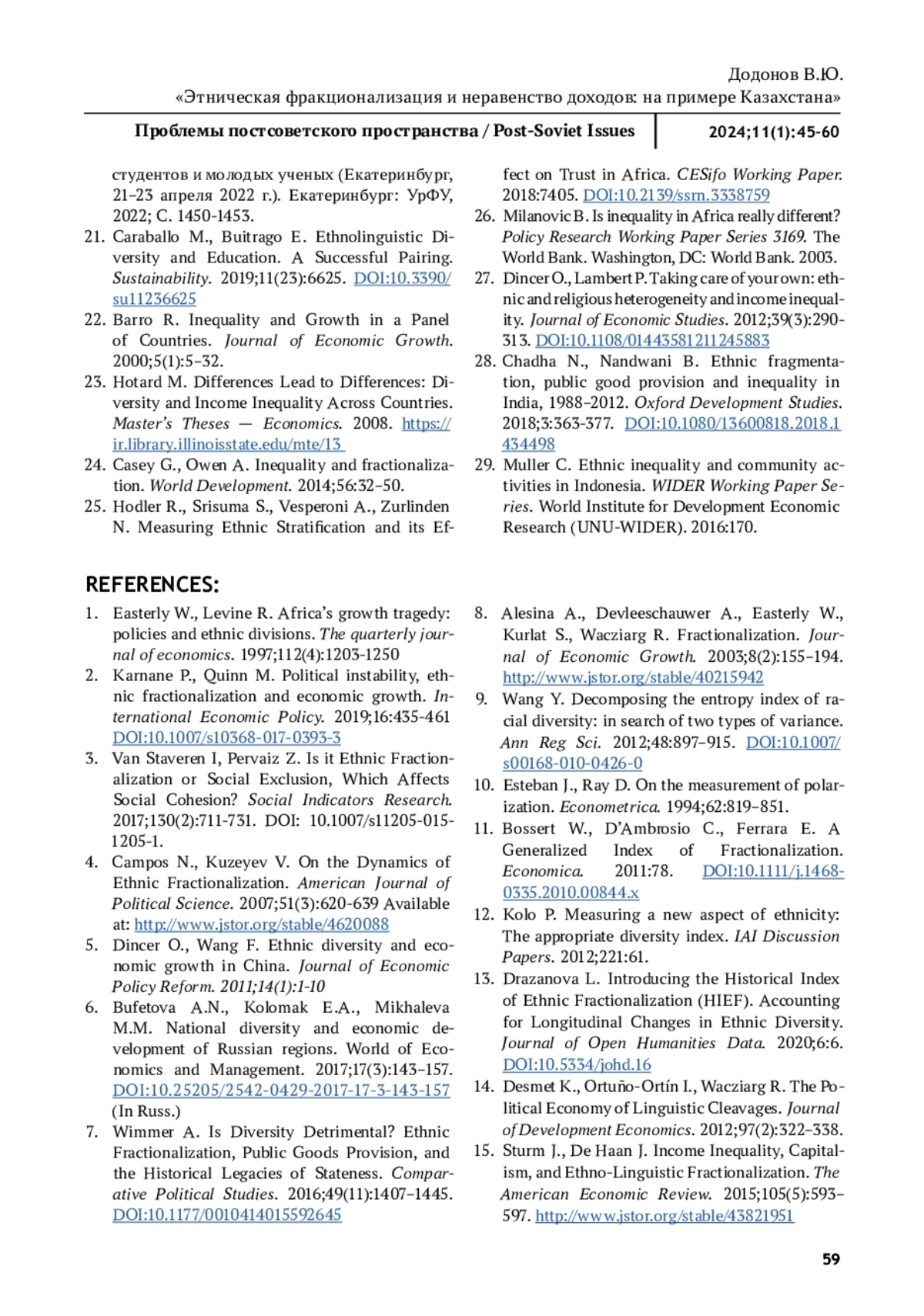 15. Sturm J., De Haan J. Income Inequality, Capitalism, and Ethno-Linguistic Fractionalization. The American Economic Review. 2015;105(5):593-597. http://www.jstor.org/stable/43821951