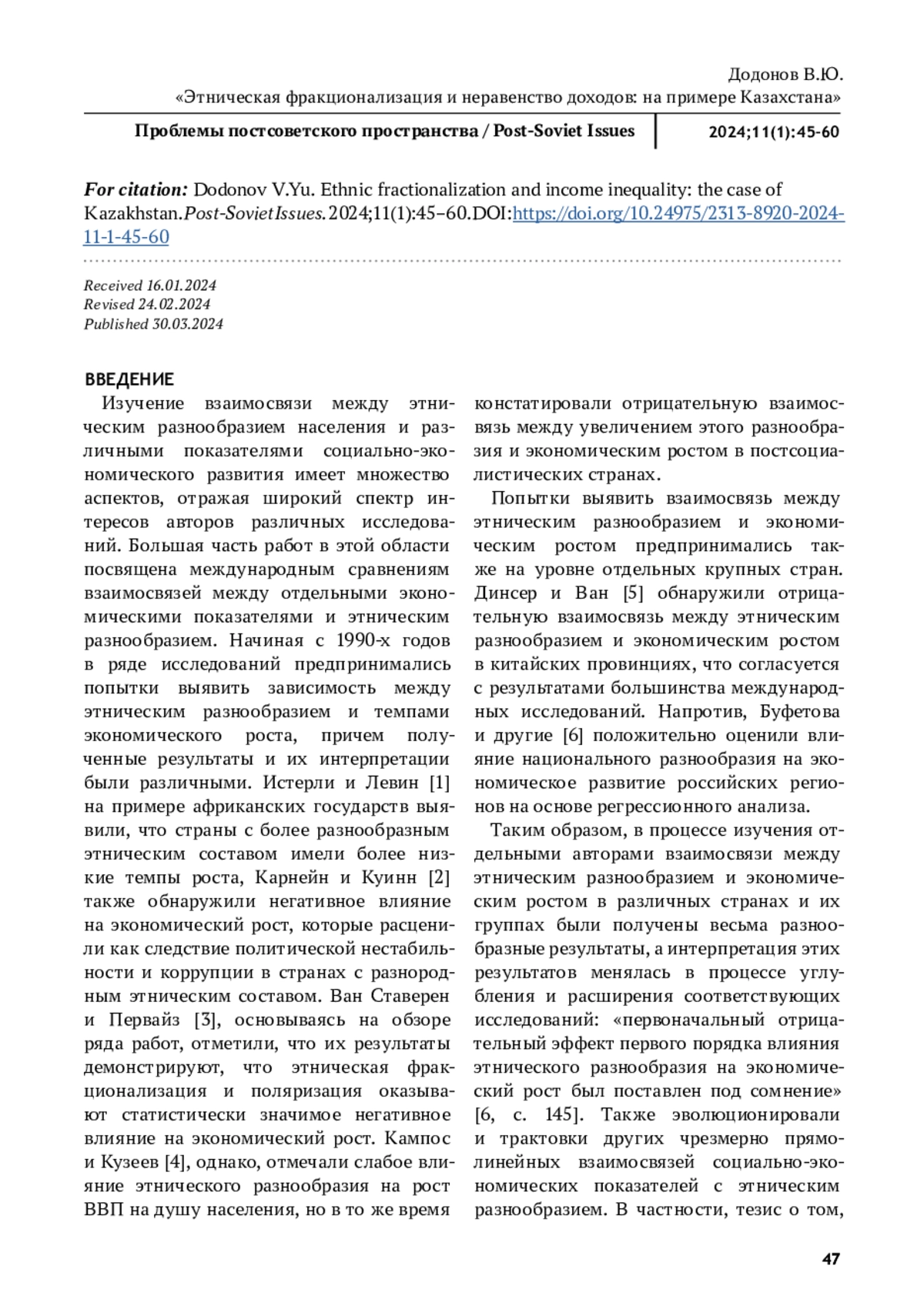 8. Alesina A., Devleeschauwer A., Easterly W., Kurlat S., Wacziarg R. Fractionalization. Journal of Economic Growth. 2003;8(2):155-194. http://www.jstor.org/stable/40215942