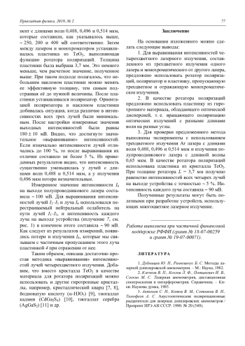 Ключевые фразы: многоцветное оптическое излучение, ротатор поляризации, выравнивание интенсивностей лучей
