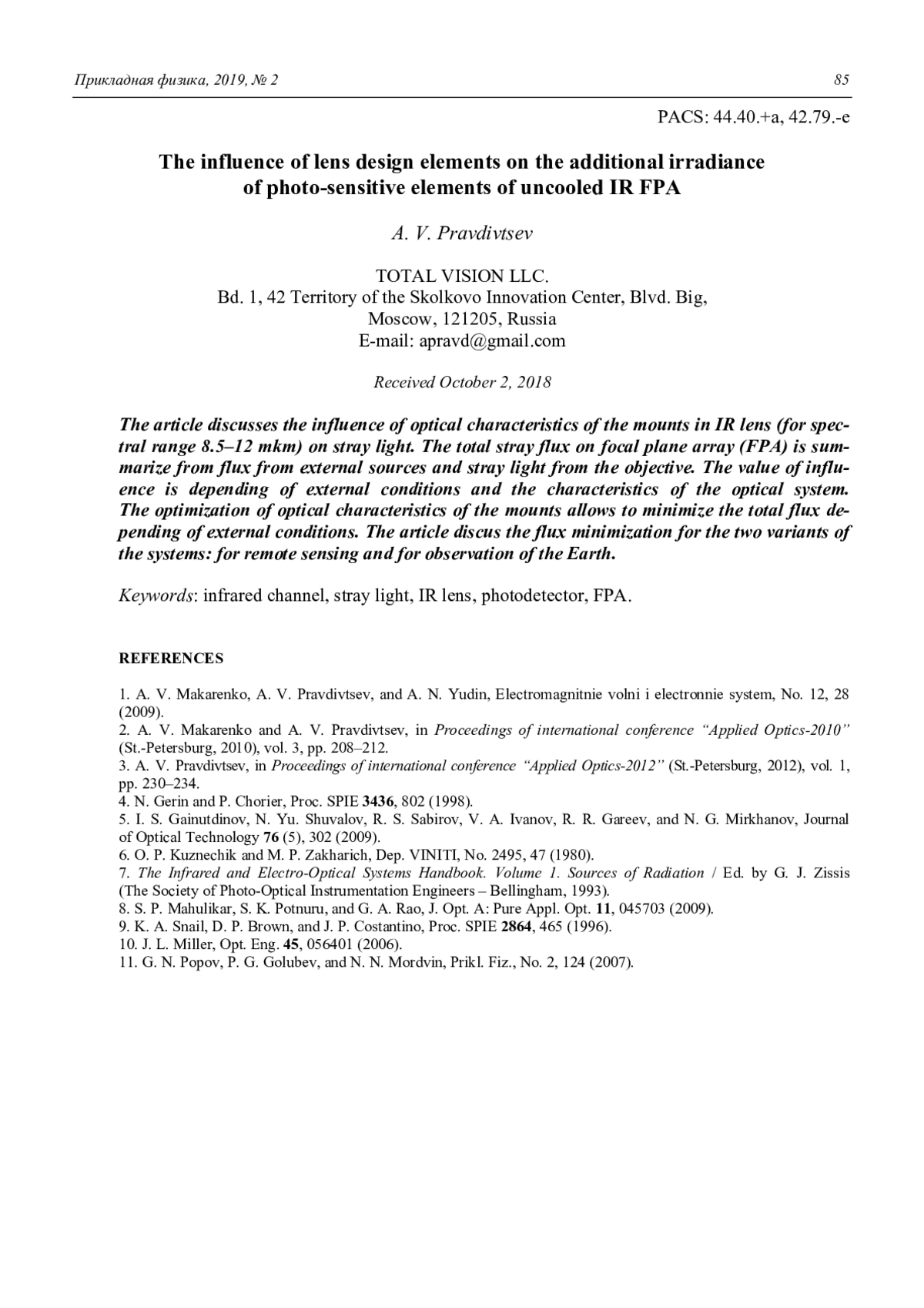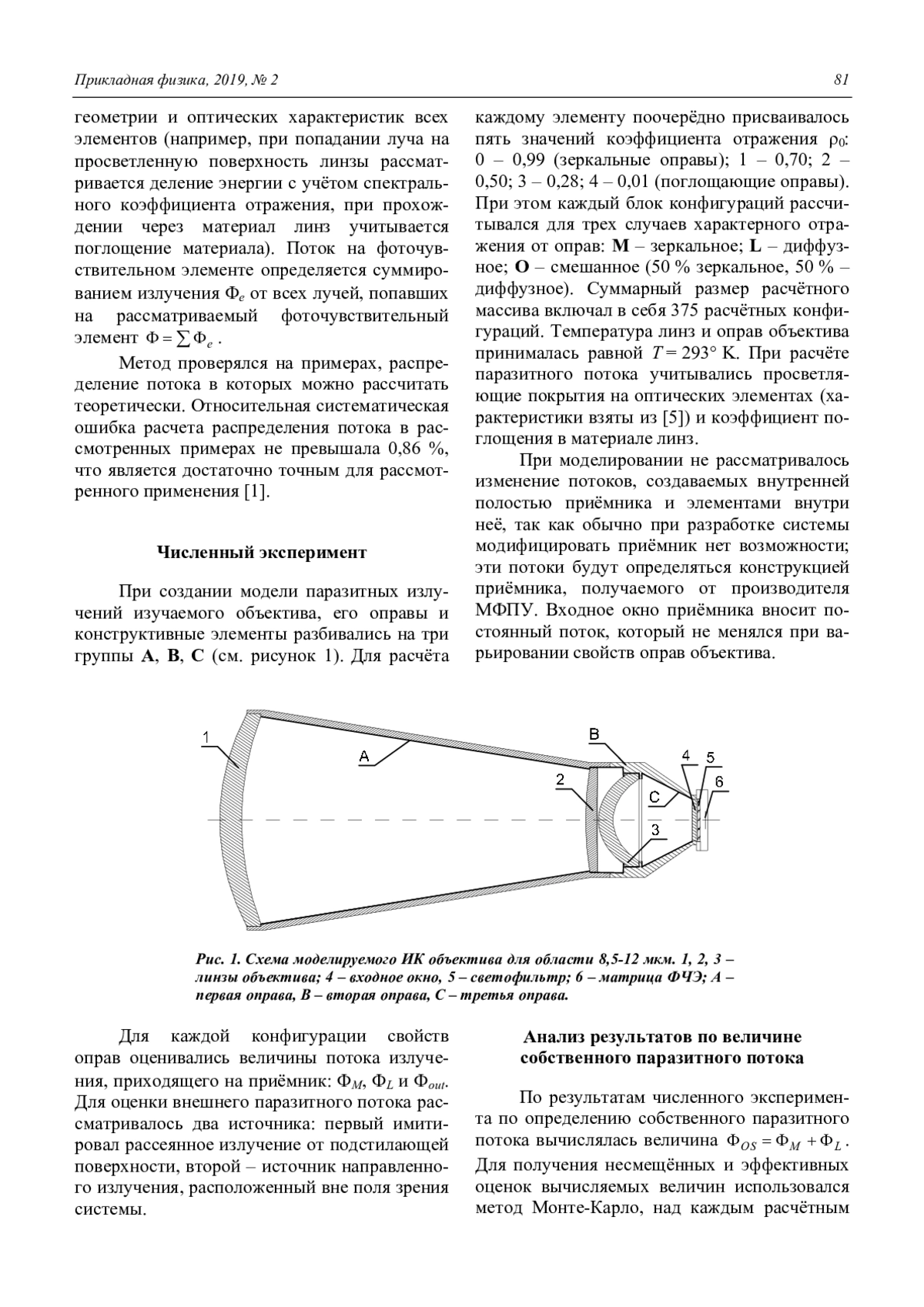 ПРАВДИВЦЕВ А. В. ВЛИЯНИЕ КОНСТРУКТИВНЫХ ЭЛЕМЕНТОВ ОБЪЕКТИВОВ НА ДОПОЛНИТЕЛЬНУЮ ОБЛУЧЕННОСТЬ ФОТОЧУВСТВИТЕЛЬНЫХ ЭЛЕМЕНТОВ НЕОХЛАЖДАЕМЫХ ИК МФПУ // ПРИКЛАДНАЯ ФИЗИКА. 2019. №2