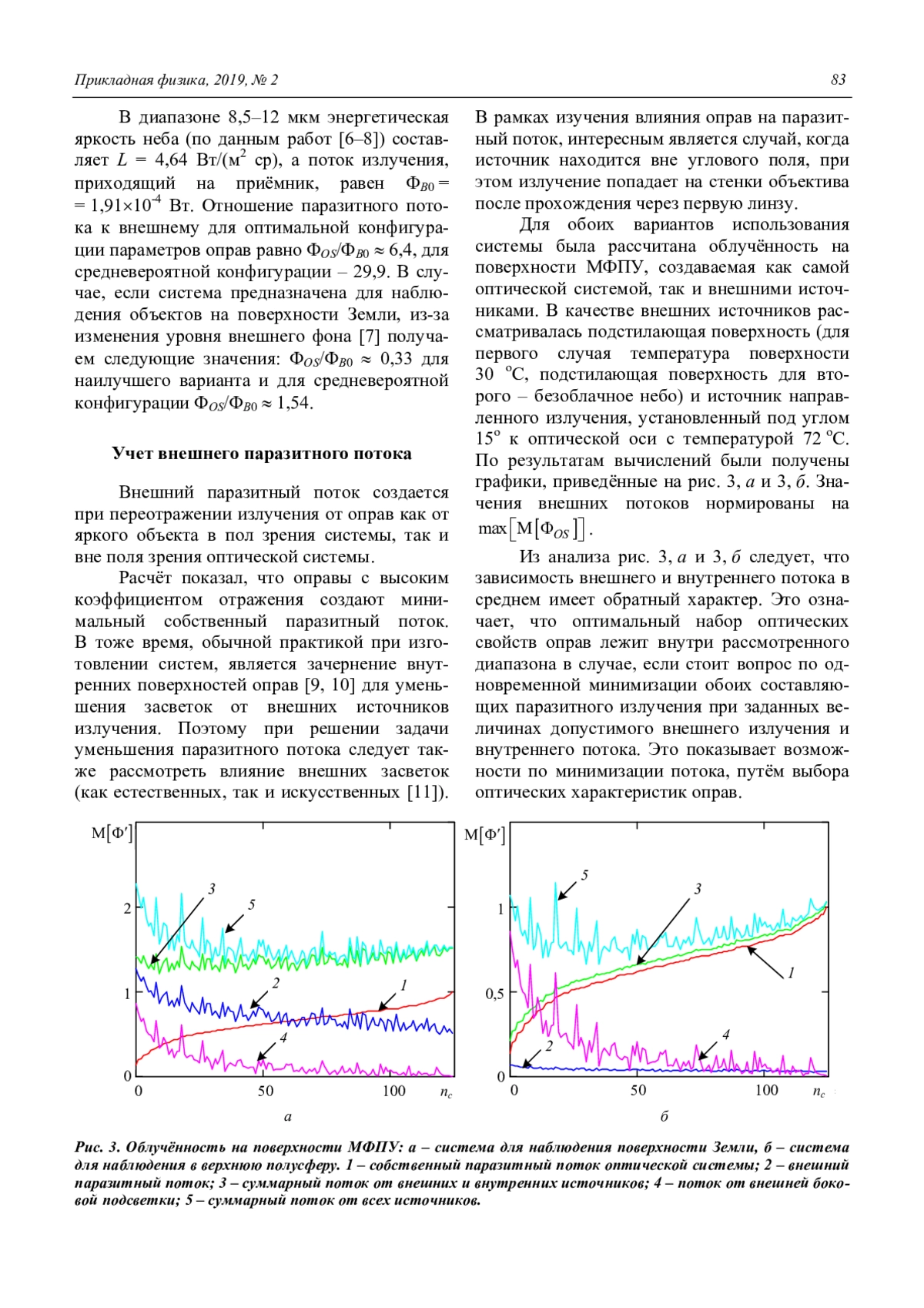 Статья: Влияние конструктивных элементов объективов на дополнительную облученность фоточувствительных элементов неохлаждаемых ИК МФПУ (2019)