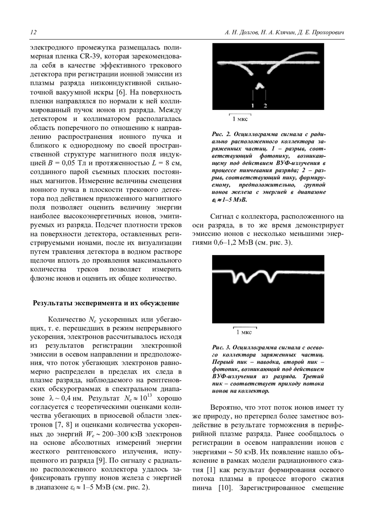 8. Долгов А. Н., Земченкова Н. В., Клячин Н. А., Прохорович Д. Е. // Физика плазмы. 2011. Т. 37. № 3. С. 194.