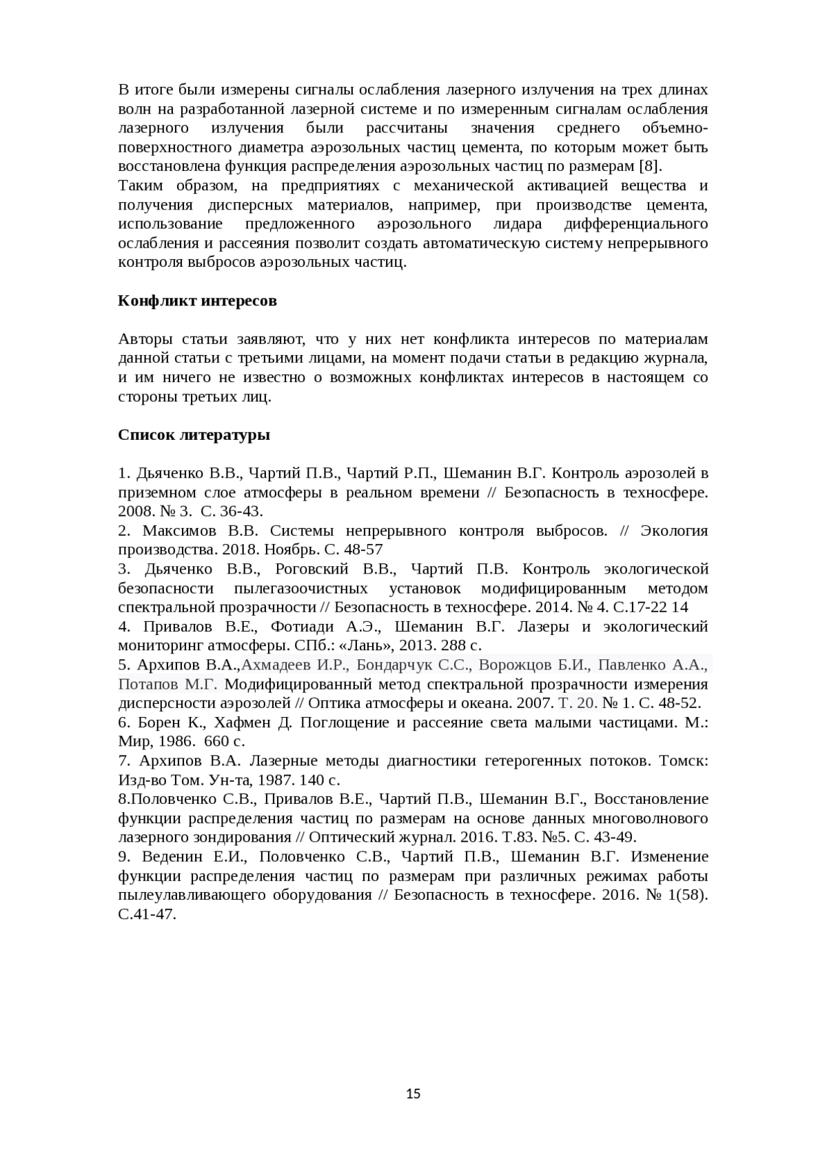 Статья: Оценка дисперсного состава цементного аэрозоля по результатам лазерного зондирования (2024)