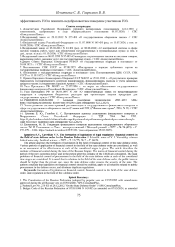 ИГНАТЬЕВА С. В., ГАВРИЛКИН В. В. СТАНОВЛЕНИЕ ЗАКОНОДАТЕЛЬСТВА О ПРАВОВОМ РЕГУЛИРОВАНИИ ФИНАНСОВОГО КОНТРОЛЯ В ОБЛАСТИ ГОСУДАРСТВЕННОГО ОБОРОННОГО ЗАКАЗА В РОССИЙСКОЙ ФЕДЕРАЦИИ // УЧЕНЫЕ ЗАПИСКИ КРЫМСКОГО ФЕДЕРАЛЬНОГО УНИВЕРСИТЕТА ИМЕНИ В. И. ВЕРНАДСКОГО. ЮРИДИЧЕСКИЕ НАУКИ. 2025. ТОМ 11. №2