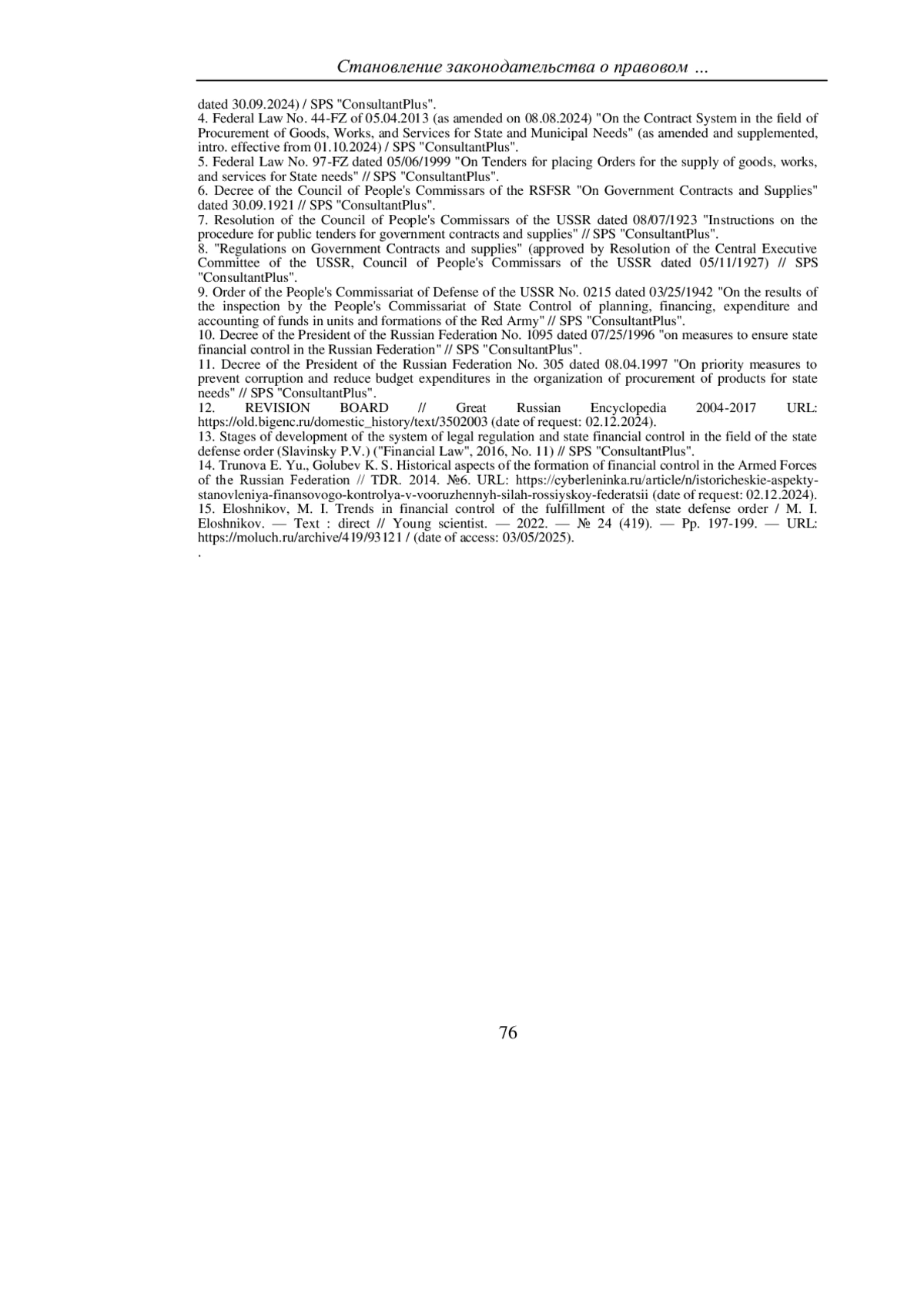 Статья: СТАНОВЛЕНИЕ ЗАКОНОДАТЕЛЬСТВА О ПРАВОВОМ РЕГУЛИРОВАНИИ ФИНАНСОВОГО КОНТРОЛЯ В ОБЛАСТИ ГОСУДАРСТВЕННОГО ОБОРОННОГО ЗАКАЗА В РОССИЙСКОЙ ФЕДЕРАЦИИ (2025)