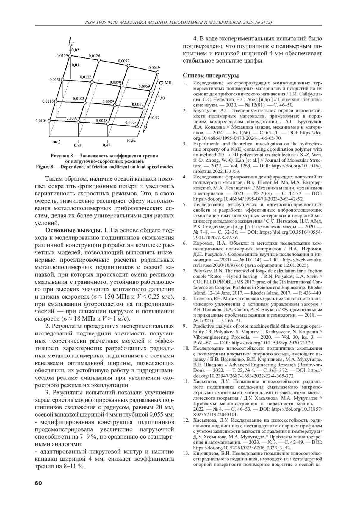 Статья: ОЦЕНКА ИЗНОСОСТОЙКОСТИ ПО КОЭФФИЦИЕНТУ ТРЕНИЯ МОДИФИЦИРОВАННОЙ КОНСТРУКЦИИ РАДИАЛЬНОГО ПОДШИПНИКА ПРИ ТУРБУЛЕНТНОМ ТЕЧЕНИИ СМАЗКИ (2025)