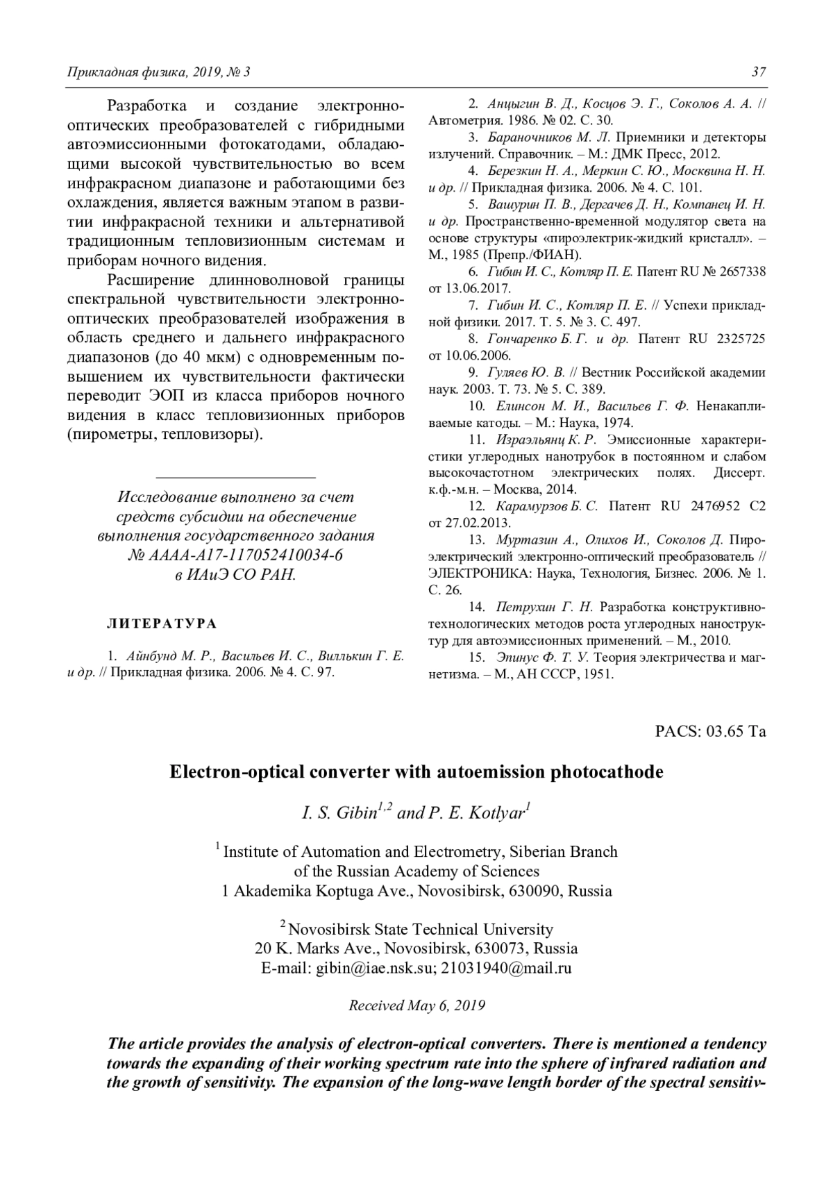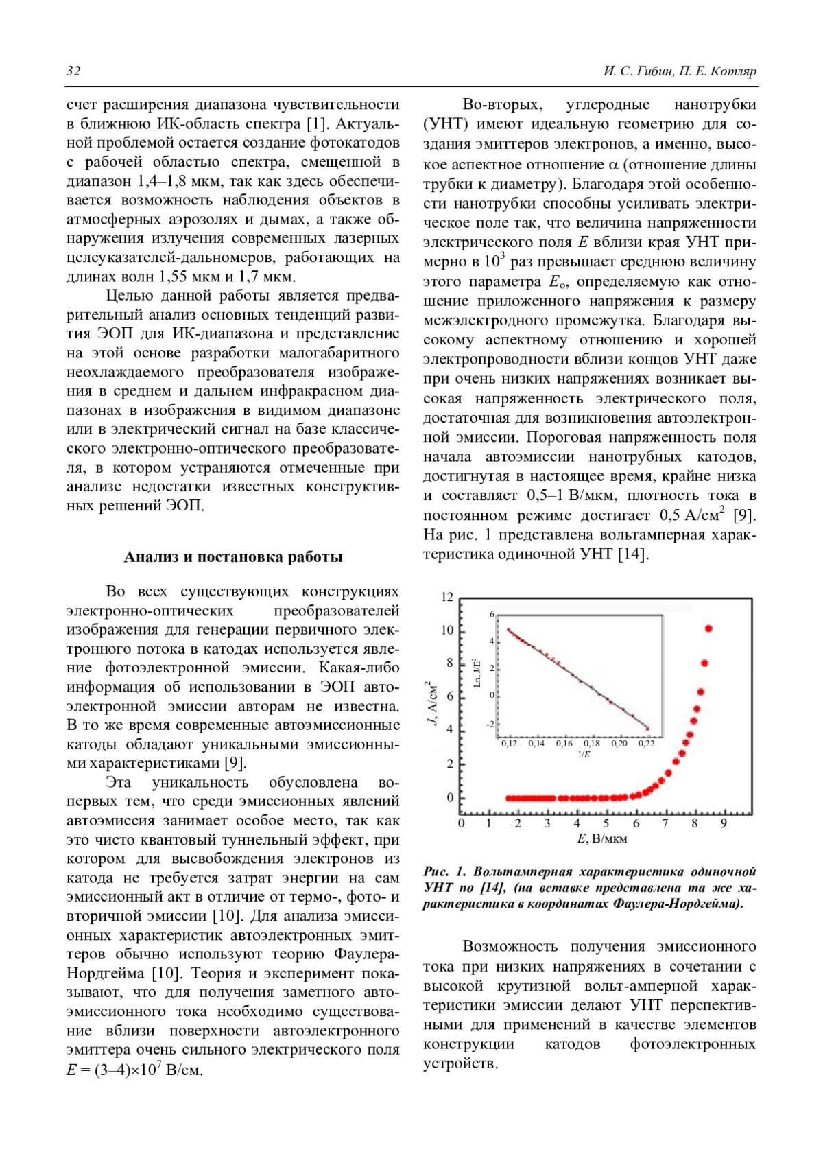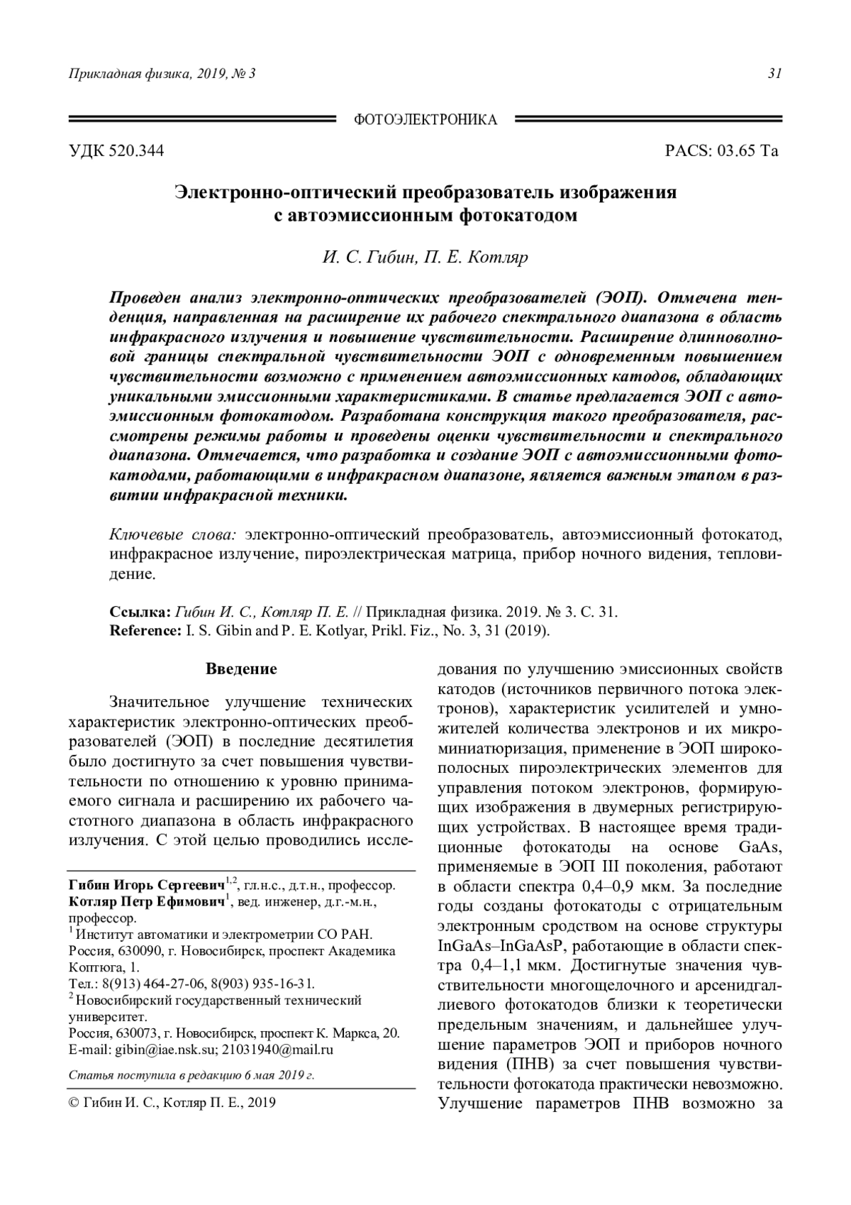 Гибин И. С., Котляр П. Е. Электронно-оптический преобразователь изображения с автоэмиссионным фотокатодом 31