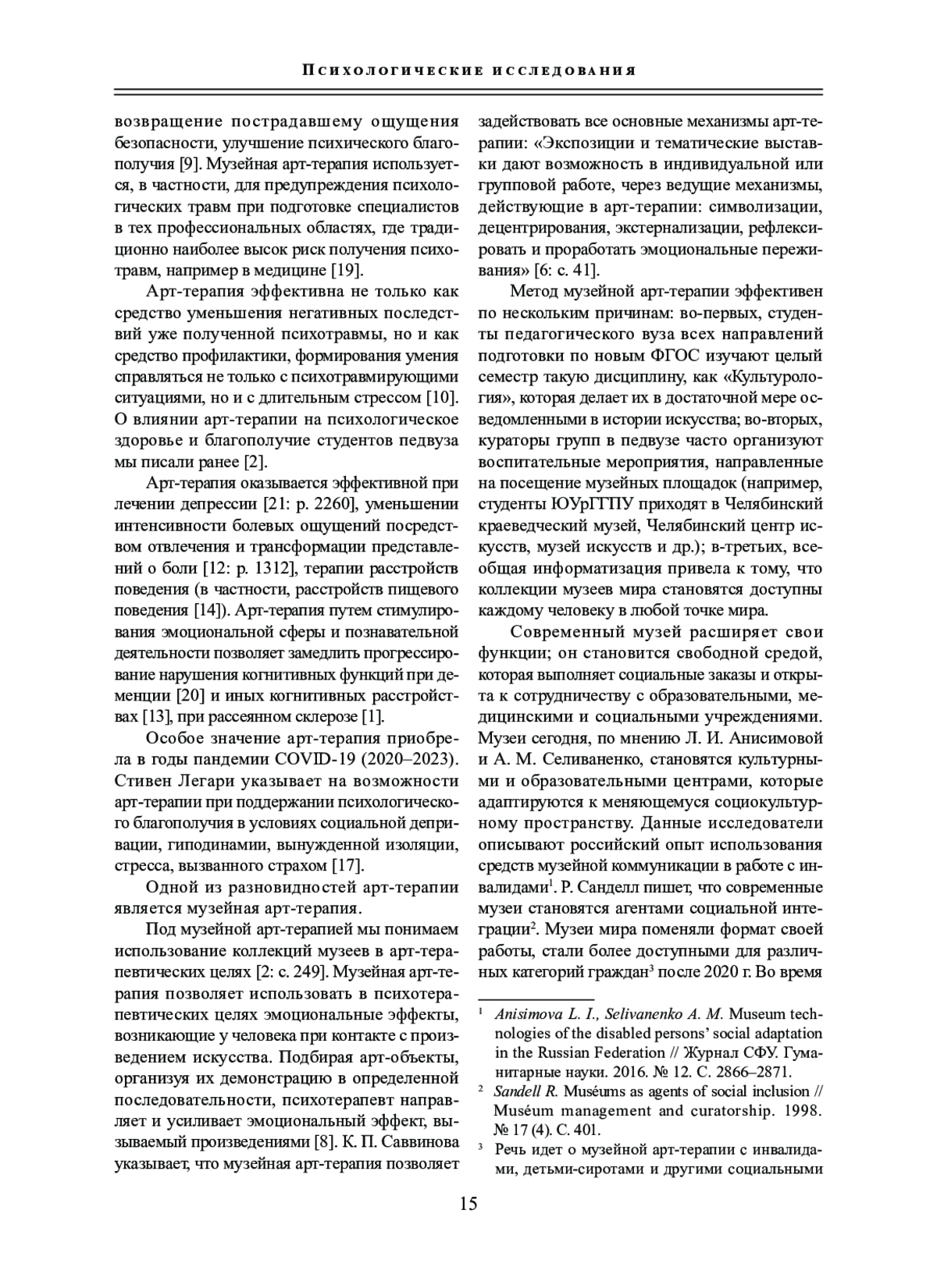 Статья: СИСТЕМНЫЙ АНАЛИЗ МУЗЕЙНОЙ АРТ-ТЕРАПИИ КАК СПОСОБА ФОРМИРОВАНИЯ КОНСТРУКТИВНЫХ КОПИНГ-СТРАТЕГИЙ (НА ПРИМЕРЕ СТУДЕНТОВ ПЕДАГОГИЧЕСКОГО ВУЗА) (2024)