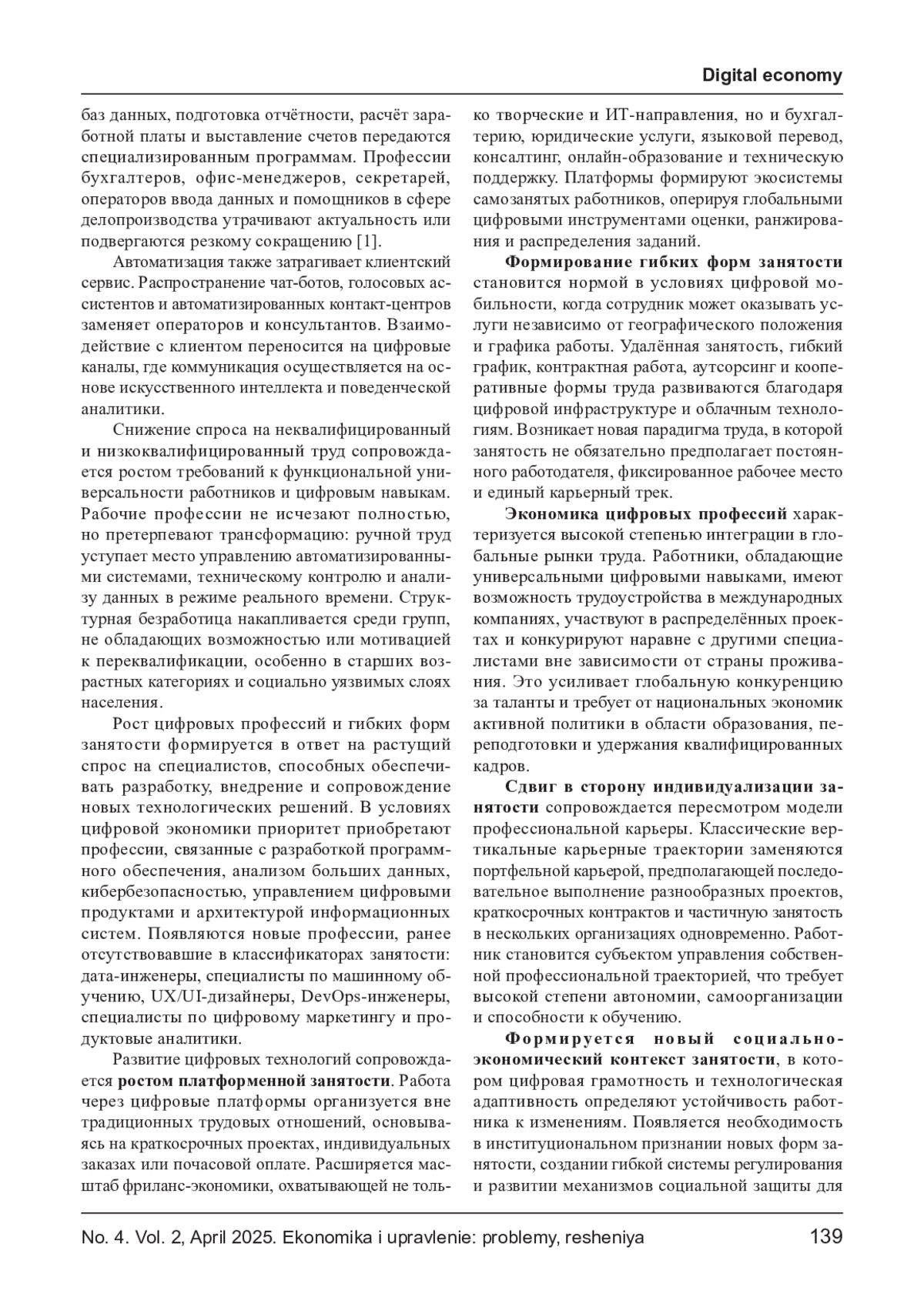Переход к цифровой экономике сопровождается масштабной трансформацией производственных и социальных процессов, затрагивая все сферы деятельности, включая рынок труда.