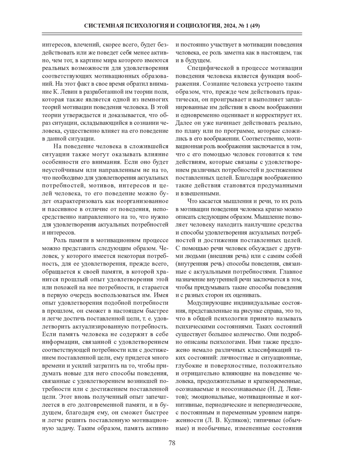 Целью настоящей работы стало исследование системных особенностей мотивационных диспозиций личности как фактора развития внутриличностного конфликта. Маркером такого конфликта является противоречие между несколькими актуальными, но нереализованными видами мотивации. Особенностью внутреннего конфликта становится длительное ощущение переживаемого дистресса.