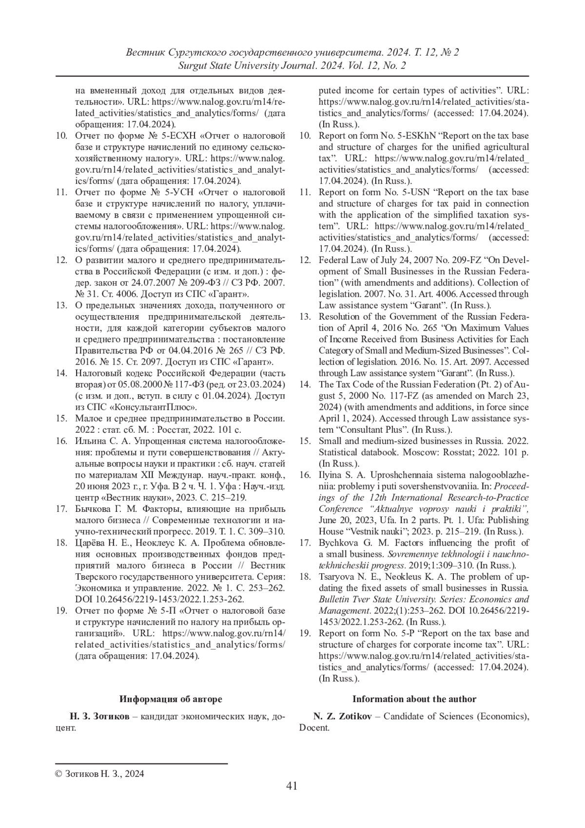 16. Ильина С. А. Упрощенная система налогообложения: проблемы и пути совершенствования // Актуальные вопросы науки и практики : сб. науч. статей по материалам XII Междунар. науч.-практ. конф., 20 июня 2023 г., г. Уфа. В 2 ч. Ч. 1. Уфа : Науч.-изд. центр «Вестник науки», 2023. С. 215-219.