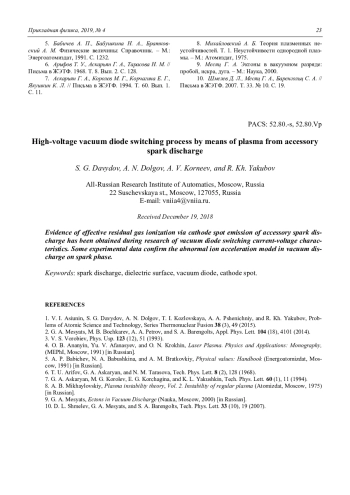 Давыдов С. Г., Долгов А. Н., Корнеев А. В., Якубов Р. Х. Коммутация высоковольтного вакуумного диода плазмой вспомогательного искрового разряда 19
