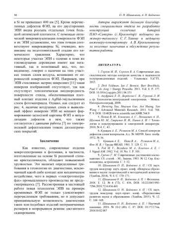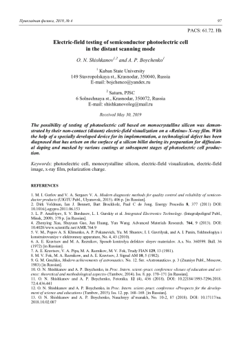 Статья: Электрополевая дефектоскопия полупроводниковых фотопреобразователей в режиме бесконтактного сканирования (2019)