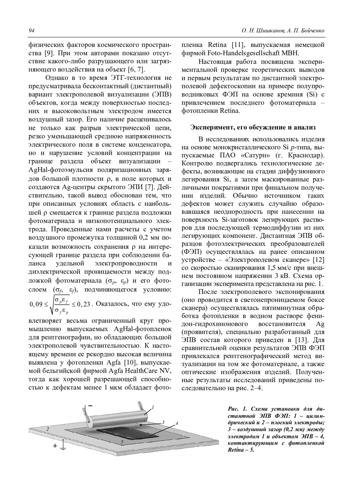 ШИШКАНОВ О. Н., БОЙЧЕНКО А. П. ЭЛЕКТРОПОЛЕВАЯ ДЕФЕКТОСКОПИЯ ПОЛУПРОВОДНИКОВЫХ ФОТОПРЕОБРАЗОВАТЕЛЕЙ В РЕЖИМЕ БЕСКОНТАКТНОГО СКАНИРОВАНИЯ // ПРИКЛАДНАЯ ФИЗИКА. 2019. №4