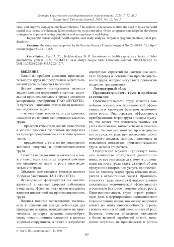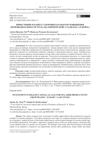 В статье исследуется влияние инвестиций в капитал здоровья на производительность труда на примере конкретного предприятия. Авторы провели кейс-стади анализ корпоративной программы по снижению травматизма на предприятии, изучили базис теории капитала здоровья и разработали стратегии по увеличению капитала здоровья и производительности труда. Особенностью авторского подхода является использование метода кейс-стади анализа, который позволяет более детально изучить конкретный случай на практике. Результаты исследования показали, что инвестиции в капитал здоровья работников предприятия могут значительно повысить производительность труда, снизить заболеваемость и травматизм, а также улучшить отношения между работниками и предприятием. Выводы авторов подтверждают необходимость инвестирования в капитал здоровья как важного фактора повышения производительности труда на предприятии. Разработанные стратегии могут быть использованы другими компаниями для улучшения условий работы и повышения качества жизни работников.