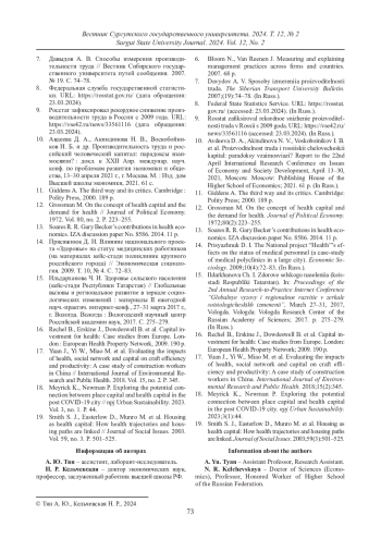 12. Grossman M. On the concept of health capital and the demand for health // Journal of Political Economy. 1972. Vol. 80, no. 2. P. 223‒255.