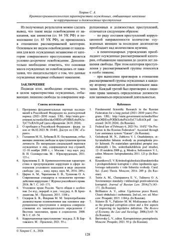 Статья: КРАТКАЯ КРИМИНОЛОГИЧЕСКАЯ ХАРАКТЕРИСТИКА ОСУЖДЕННЫХ, ОТБЫВАЮЩИХ НАКАЗАНИЕ ЗА КОРРУПЦИОННЫЕ И ДОЛЖНОСТНЫЕ ПРЕСТУПЛЕНИЯ (2024)