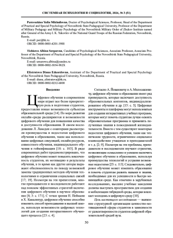 Цифровое обучение в современном мире играет все более приоритетную роль в подготовке студентов, предоставляя новые возможности субъектам образовательной среды [14]. По мере развития онлайн-среды расширяются и возможности цифрового обучения для повышения качества и доступности образования.