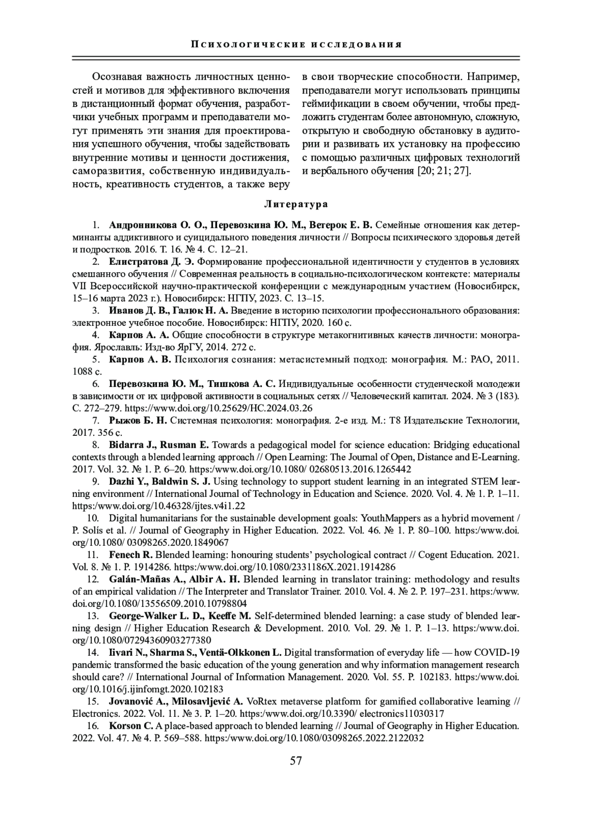 16. Korson C. A place-based approach to blended learning // Journal of Geography in Higher Education. 2022. Vol. 47. № 4. P. 569-588. https:/www. DOI: 10.1080/03098265.2022.2122032 EDN: XLTUQY