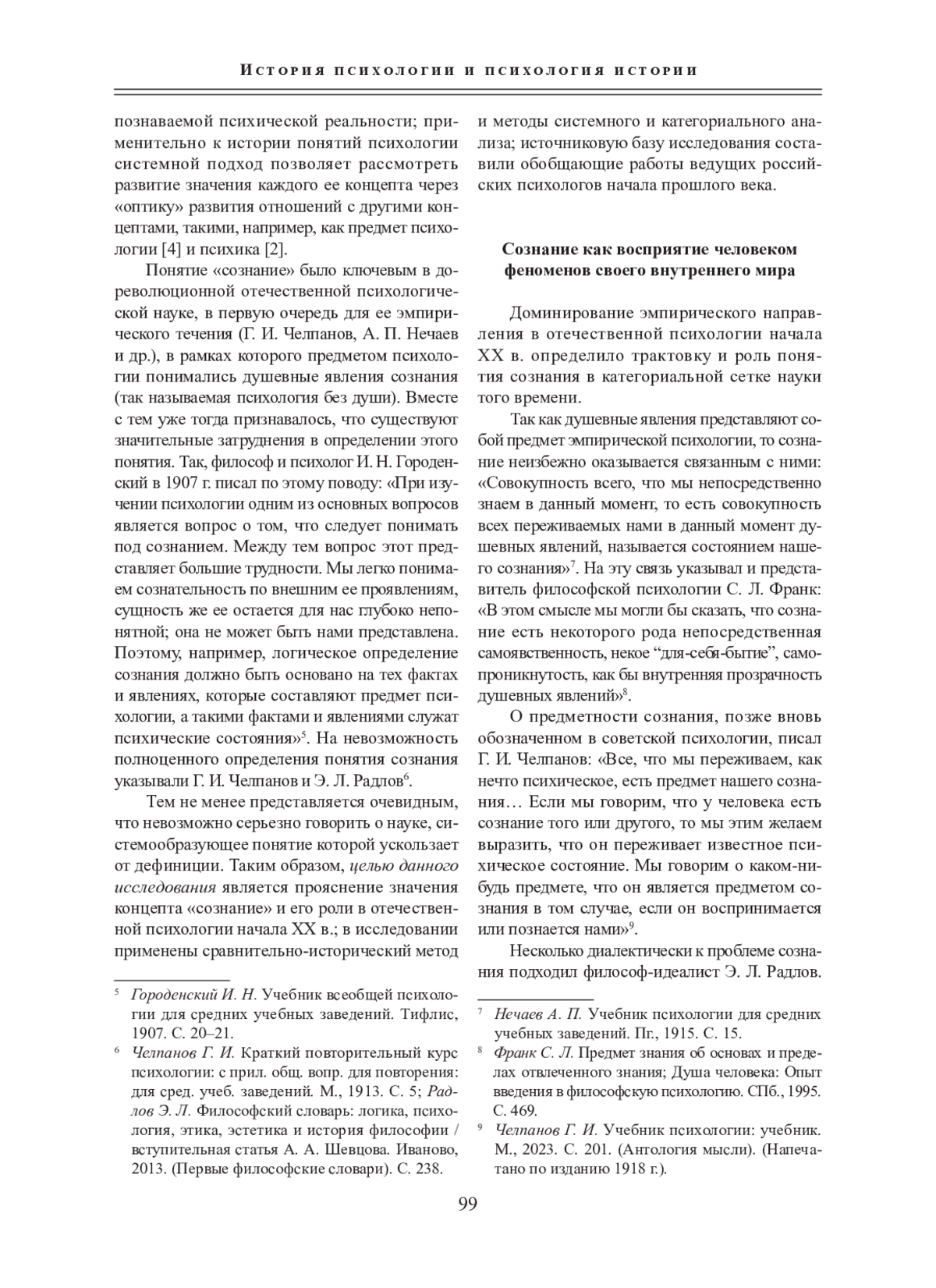 Статья: ПОНЯТИЕ СОЗНАНИЯ В ОТЕЧЕСТВЕННОЙ ПСИХОЛОГИИ НАЧАЛА ХХ В (2024)