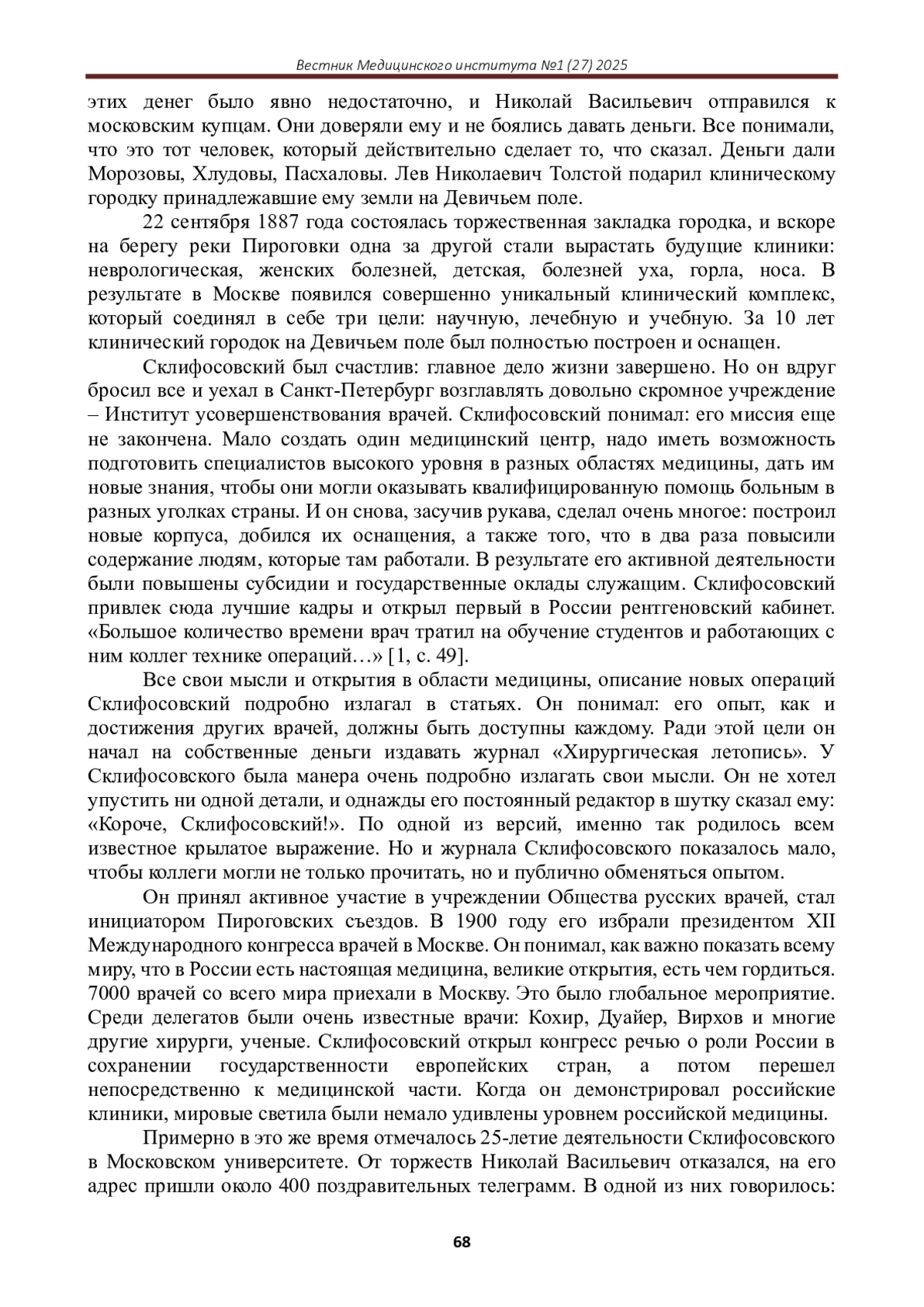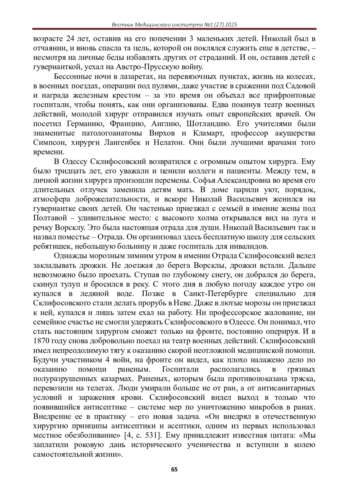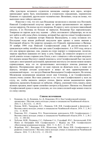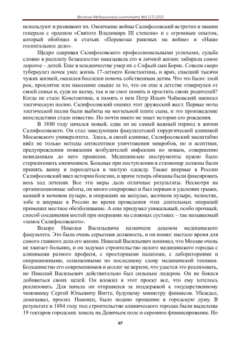Статья: НИКОЛАЙ СКЛИФОСОФСКИЙ: УЧЕНЫЙ-НОВАТОР И ВОЕННЫЙ ХИРУРГ XIX ВЕКА (2025)