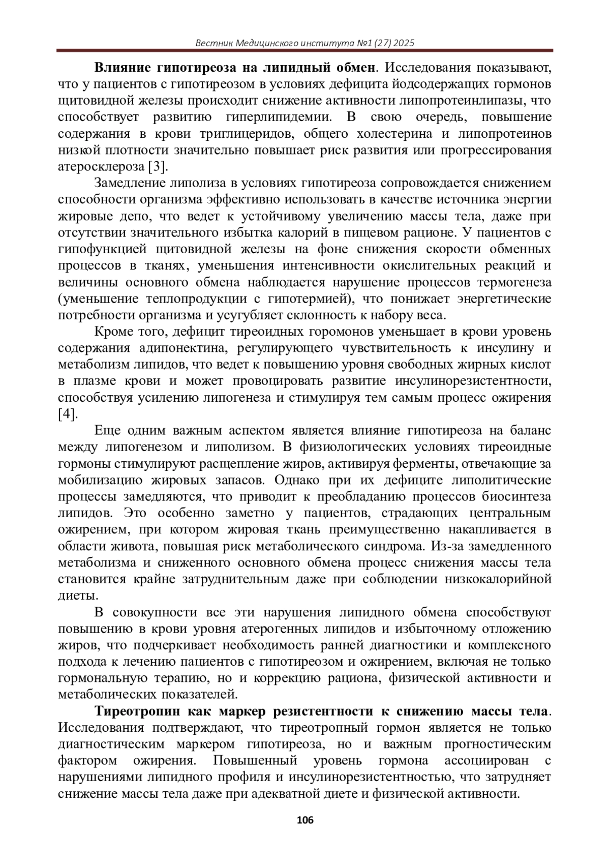 8. Иванов, П.П., Смирнова, А.А. Влияние тиреоидных гормонов на метаболизм липидов// Журнал клинической эндокринологии. - URL: 10.14341 / clinend 2024.0025 (2024 г.). DOI: 10.14341/clinend2024.0025(2024