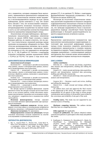 12. Lewis T.L., Lau B., Alkhalfan Y., Trowbridge S., Gordon D., Vernois J. et al. Fourth-Generation Minimally Invasive Hallux Valgus Surgery With Metaphyseal Extra-Articular Transverse and Akin Osteotomy (META): 12 Month Clinical and Radiologic Results. Foot Ankle Int. 2023;44(3):178-191. DOI: 10.1177/10711007231152491