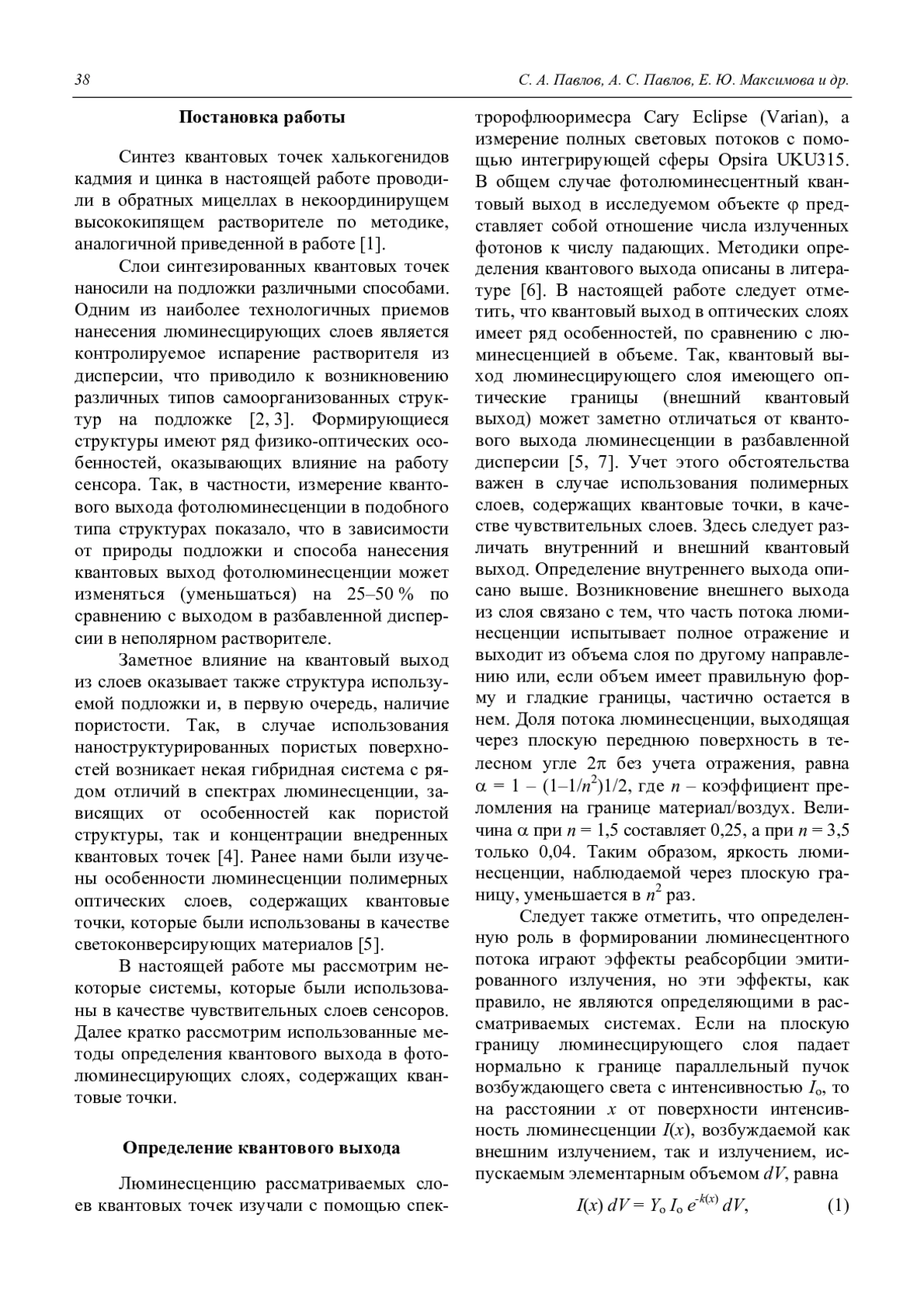 S. A. Pavlov, A. S. Pavlov, E. Yu. Maksimova, A. V. Alekseenko, A. V. Pavlov, A. D. Zelenskaya, and E. M. Antipov Influence of nonradiative energy transfer processes of electronic excitation on the efficiency of sensitive layers of fluorescent sensors 37