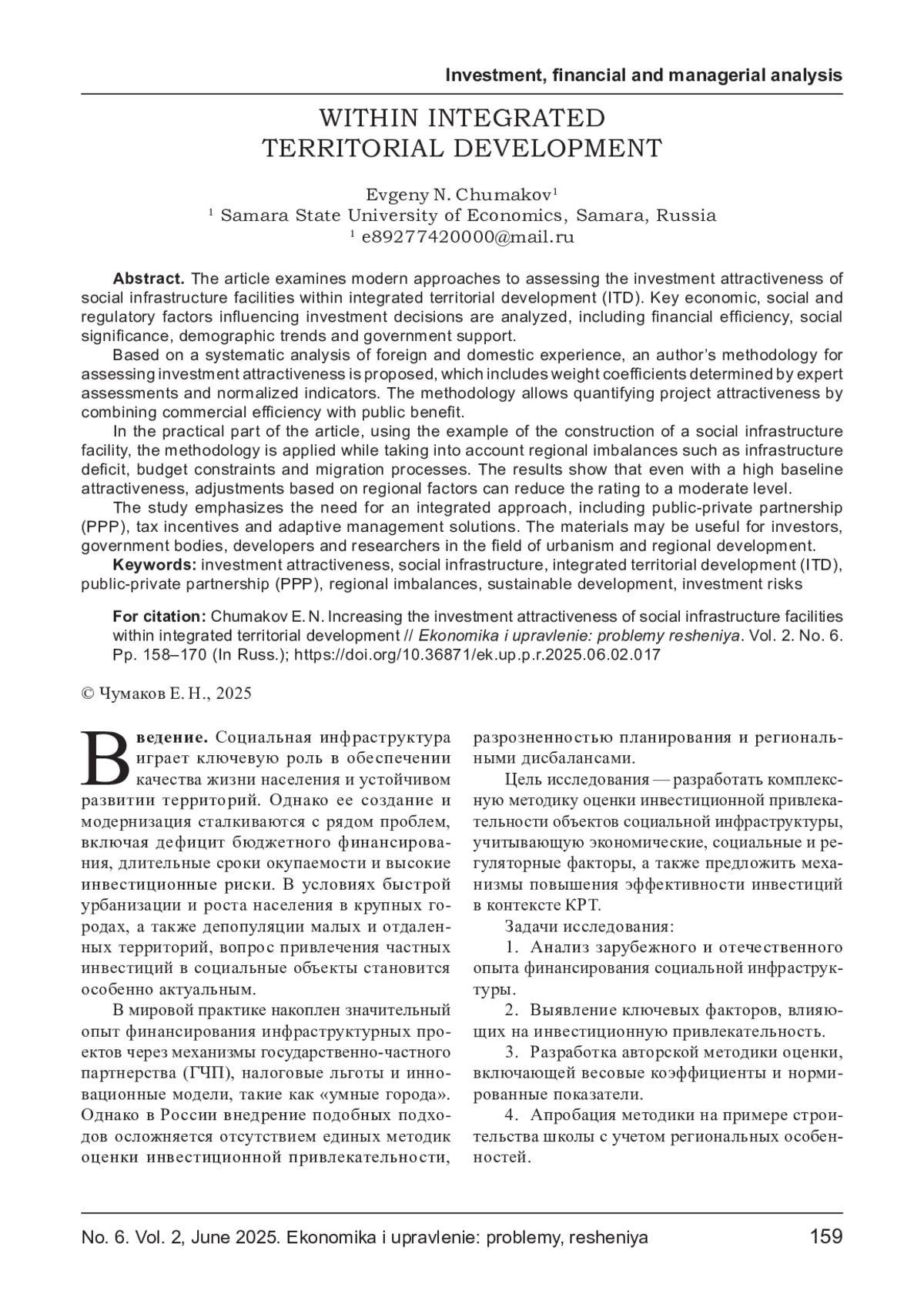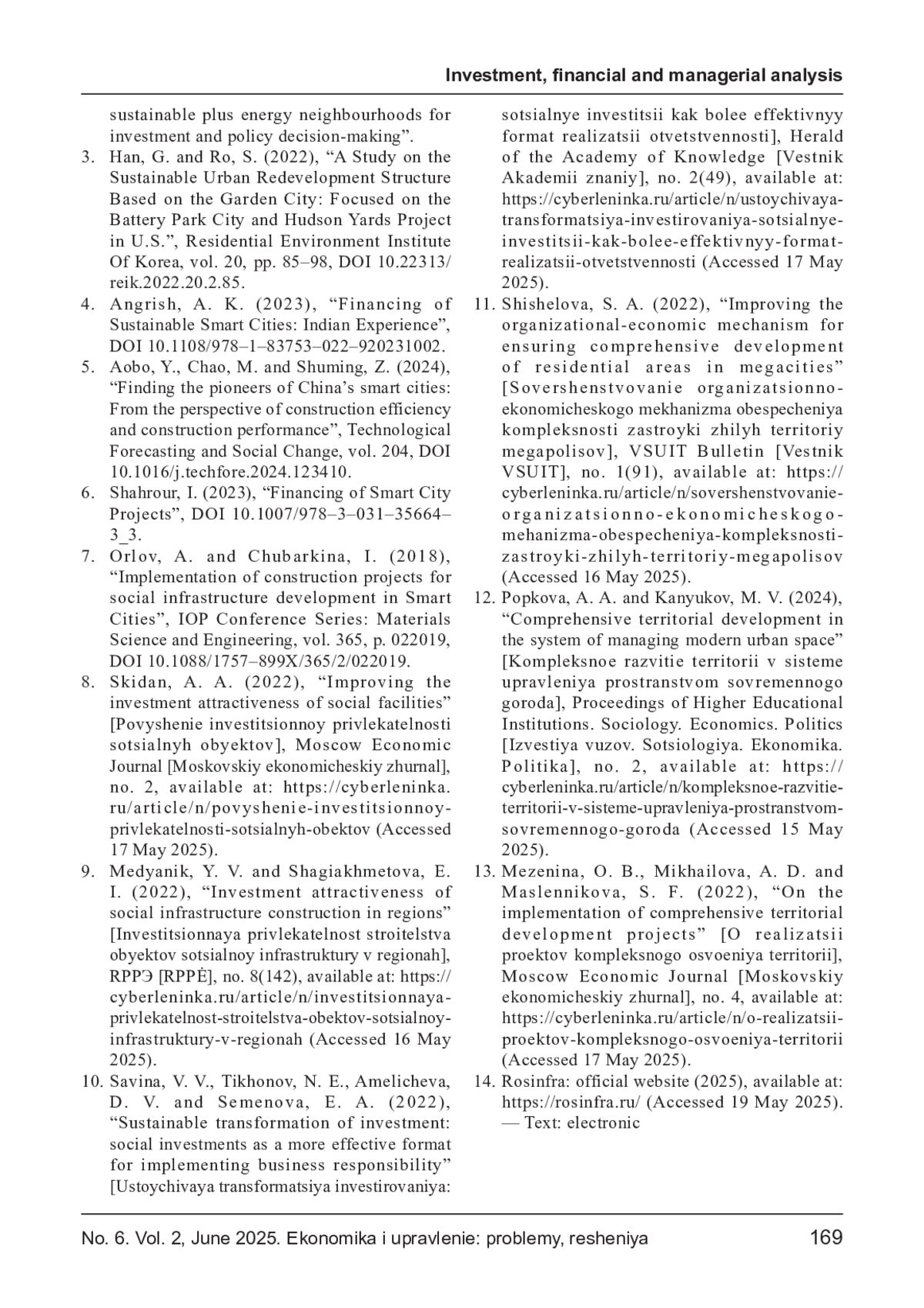 8. Скидан А. А. Повышение инвестиционной привлекательности социальных объектов [Электронный ресурс] // Московский экономический журнал. - 2022. - № 2. - URL: https://cyberleninka.ru/article/n/povyshenie-investitsionnoy-privlekatelnosti-sotsialnyhobektov (дата обращения: 17.05.2025). EDN: RQKUHQ
