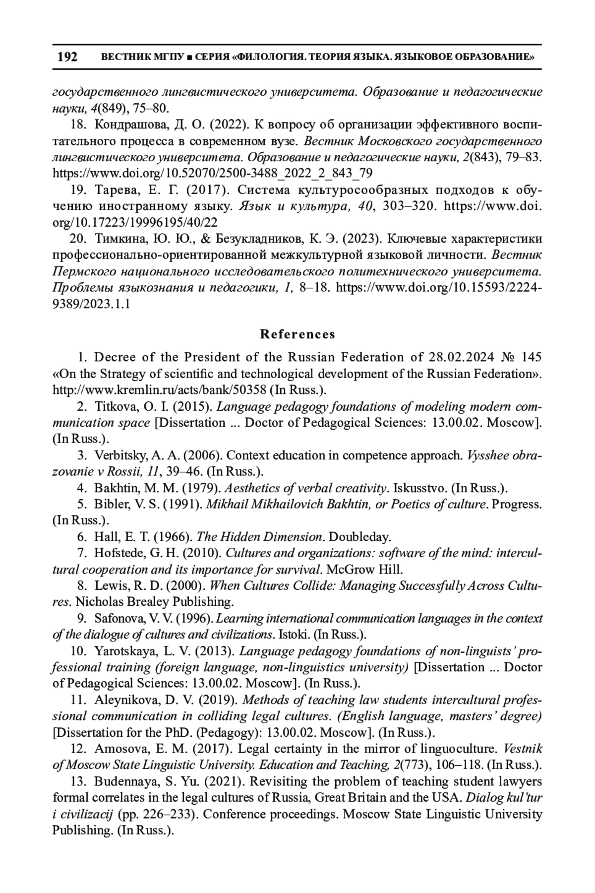 Журнал: ВЕСТНИК МГПУ. СЕРИЯ: ФИЛОЛОГИЯ. ТЕОРИЯ ЯЗЫКА. ЯЗЫКОВОЕ ОБРАЗОВАНИЕ