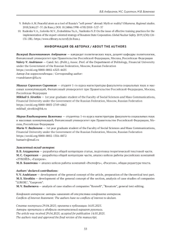 4. Багиров Т. А. Международное значение реформ в нефтегазовом секторе России в 1990-х годах в контексте российско-американских отношений. Дис... д-р полит. наук. Москва; 2000. 234 с.