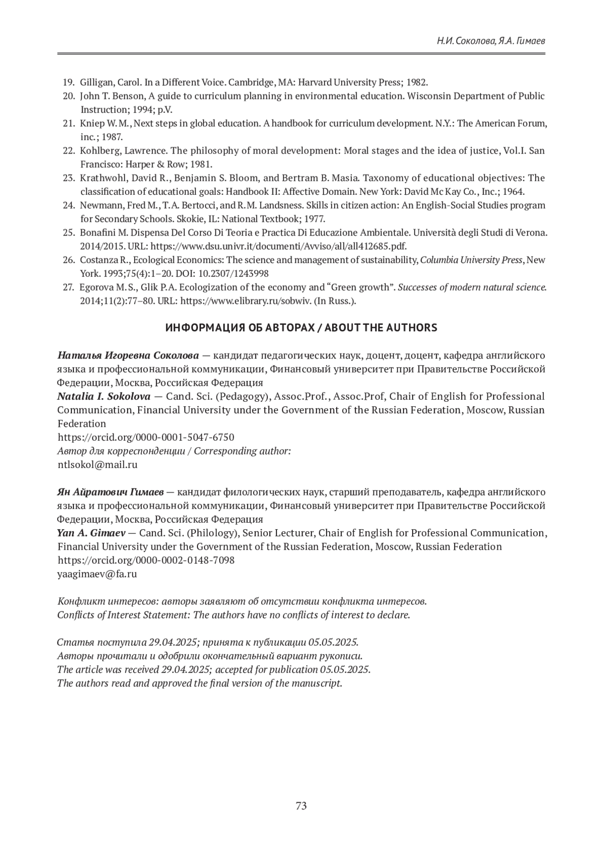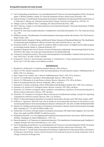 9. Глазачев С. Н. Экологическая культура учителя: проблемы, противоречия, опыт. Экологическое образование в России: проблемы и практика. Москва; 1995.