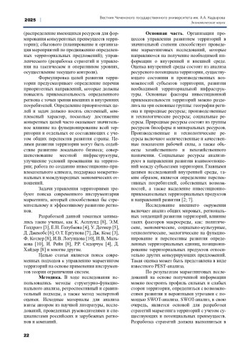 Статья: ФОРМИРОВАНИЕ ПОДХОДОВ К УПРАВЛЕНИЮ МАРКЕТИНГОМ ТЕРРИТОРИЙ НА ОСНОВЕ ТЕОРИИ ОГРАНИЧЕНИЙ СИСТЕМ (2025)
