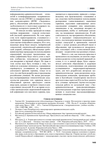 7. Гельдибаев М.Х., Мальцагов И.Д. Инновационные цифровые технологии криминологических отраслей на примере “экокриминология”. - ЧОУ ВО “БГИ” - С. 76-85. //Актуальные вопросы экономики и управления, права, психологии и образования: роль семьи в современном обществе. Сборник научных статей ежегодной Всероссийской конференции с международным участием научно-педагогических работников / Отв. ред. Е.В. Федосенко, Л.Ф. Уварова. - СПб.: Ниц Арт; ИП Сергеев, 2024. - 86 с. (Материалы конференции научно-педагогических работников). EDN: TQCCKX