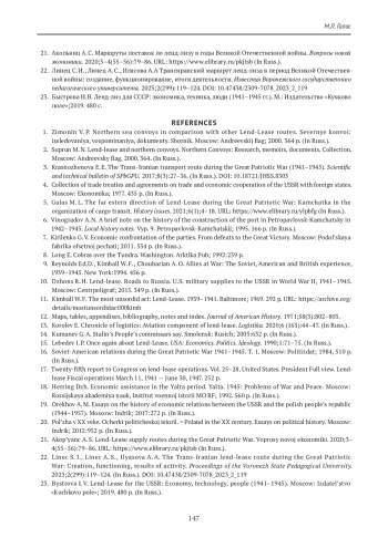 22. Линец С.И., Линец А.С., Илясова А.А Трансиранский маршрут ленд-лиза в период Великой Отечественной войны: создание, функционирование, итоги деятельности. Известия Воронежского государственного педагогического университета. 2023;2(299):119-124. https://doi.org/10.47438/2309-7078_2023_2_119
