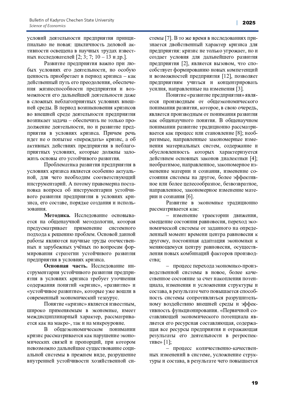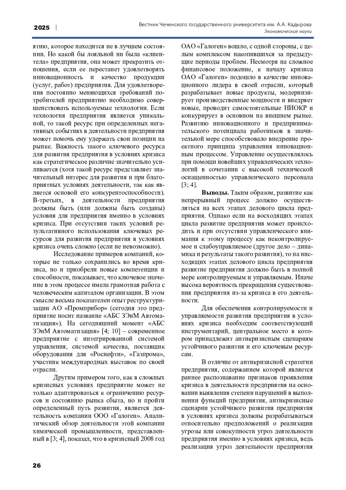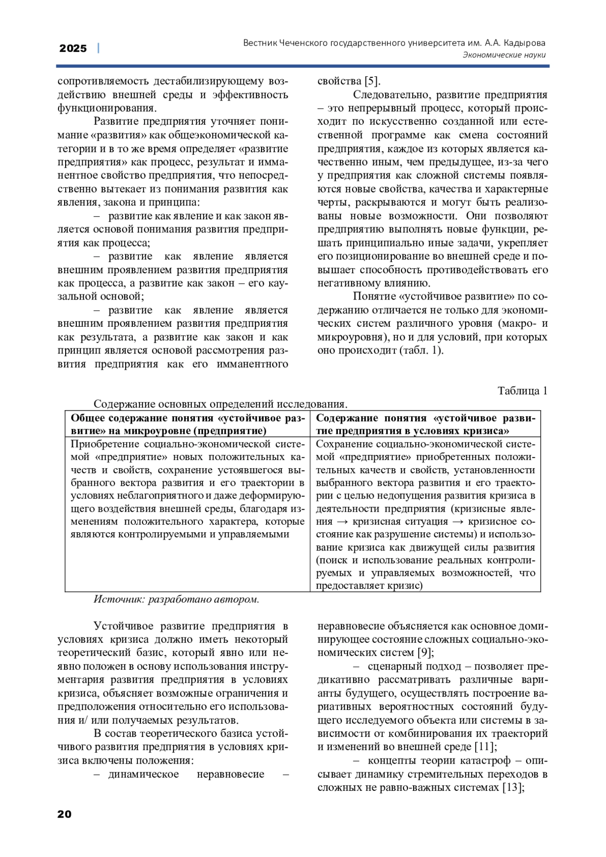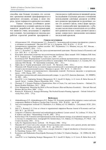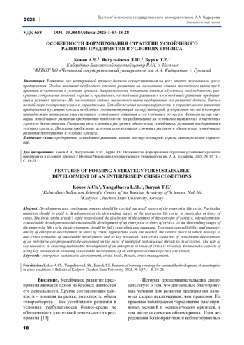 Статья: ОСОБЕННОСТИ ФОРМИРОВАНИЯ СТРАТЕГИИ УСТОЙЧИВОГО РАЗВИТИЯ ПРЕДПРИЯТИЯ В УСЛОВИЯХ КРИЗИСА (2025)