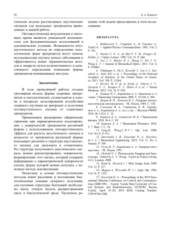 Статья: Моделирование акустических сигналов при оптоакустическом эффекте для обнаружения эритроцитов различной формы лазерным цитометром (2019)