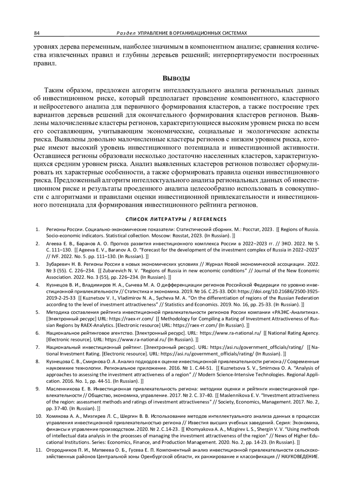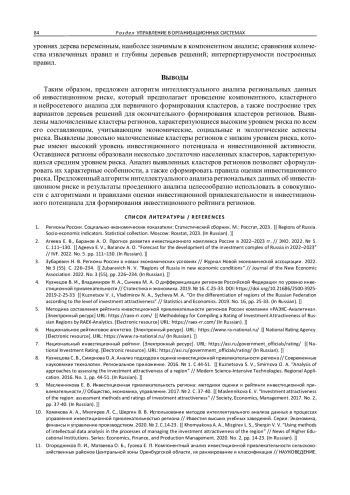 10. Хомякова А. А., Мизгирев Л. С., Шергин В. В. Использование методов интеллектуального анализа данных в процессах управления инвестиционной привлекательностью региона // Известия высших учебных заведений. Серия: Экономика, финансы и управление производством. 2020. № 2. С.14-23. EDN: VPNKTP Khomyakova A. A., Mizgirev L. S., Shergin V. V. “Using methodsof intellectual data analysis in the processes of managing the investment attractiveness of the region” // News of Higher Educational Institutions. Series: Economics, Finance, and Production Management. 2020. No. 2, pp. 14-23. (In Russian). EDN: VPNKTP