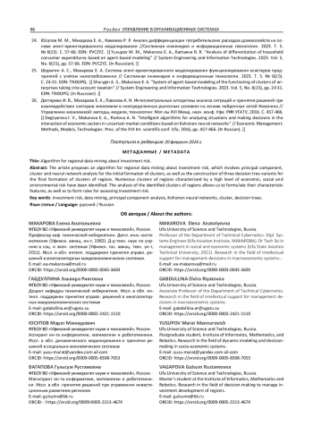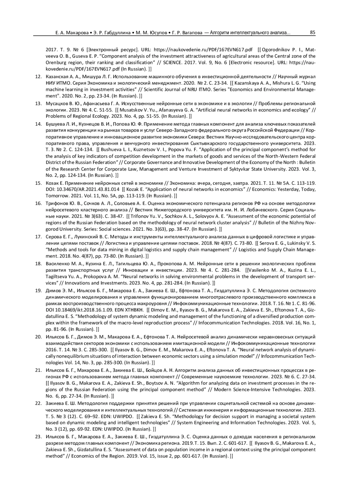 21. Ильясов Б. Г., Макарова Е. А., Закиева Е. Ш., Бойцов А. Н. Алгоритм анализа данных об инвестиционных процессах в регионах РФ с использованием метода главных компонент // Современные наукоемкие технологии. 2023. № 6. С. 27-34. EDN: CGOWJK Ilyasov B. G., Makarova E. A., Zakieva E. Sh., Boytsov A. N. “Algorithm for analyzing data on investment processes in the regions of the Russian Federation using the principal component method” // Modern Science-Intensive Technologies. 2023.No. 6, pp. 27-34. (In Russian). EDN: CGOWJK