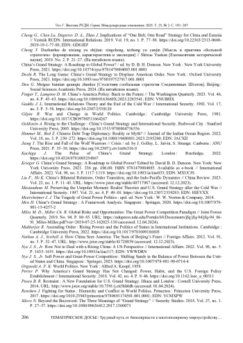 12. Cheng Y. Dazhanlue de sixiang yu shijian: xingcheng, tezheng yu yanjin [Мысль и практика “большой стратегии”: формирование, характеристики и эволюция] // Shixue Yuekan [Ежемесячник исторической науки]. 2018. No. 2. P. 21-27. (На китайском языке).
