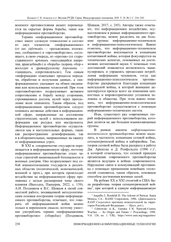 5. Выходец Р. С., Панцерев К. А. Сравнительный анализ современных концепций информационного противоборства // Евразийская интеграция: экономика, право, политика. 2022. Т. 16, № 4 (42). С. 139-148. ;. DOI: 10.22394/2073-2929-2022-04-139-148 EDN: SVTUJU