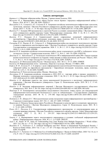 1. Бартош А. А. Мировая гибридная война. Москва: Горячая линия-Телеком, 2024.