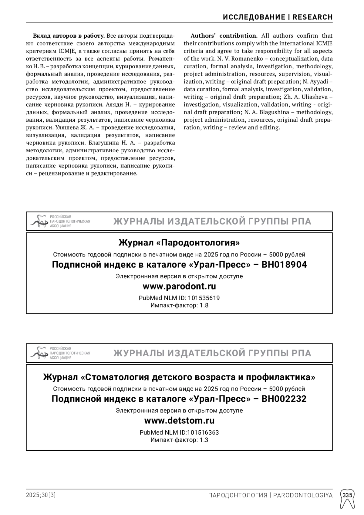 8. Романенко НВ, Тульских ЕВ, Кирсанова НМ, Тарасенко СВ. Определение эффективности воздействия низкоинтенсивным лазерным излучением длиной волны 445 нм на область десны по данным лазерной допплеровской флоуметрии. Клиническая практика. 2025;16(1):38-46. DOI: 10.17816/clinpract677229