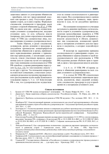 3. Давлетов А. Проблема состязательности решена в УПК РФ неудачно // Рос. юстиция. 2003. № 8. - С. 16-18.