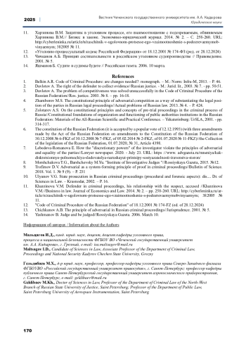 13. Чичканов А.Б. Принцип состязательности в российском уголовном судопроизводстве // Правоведение. 2001. № 5.