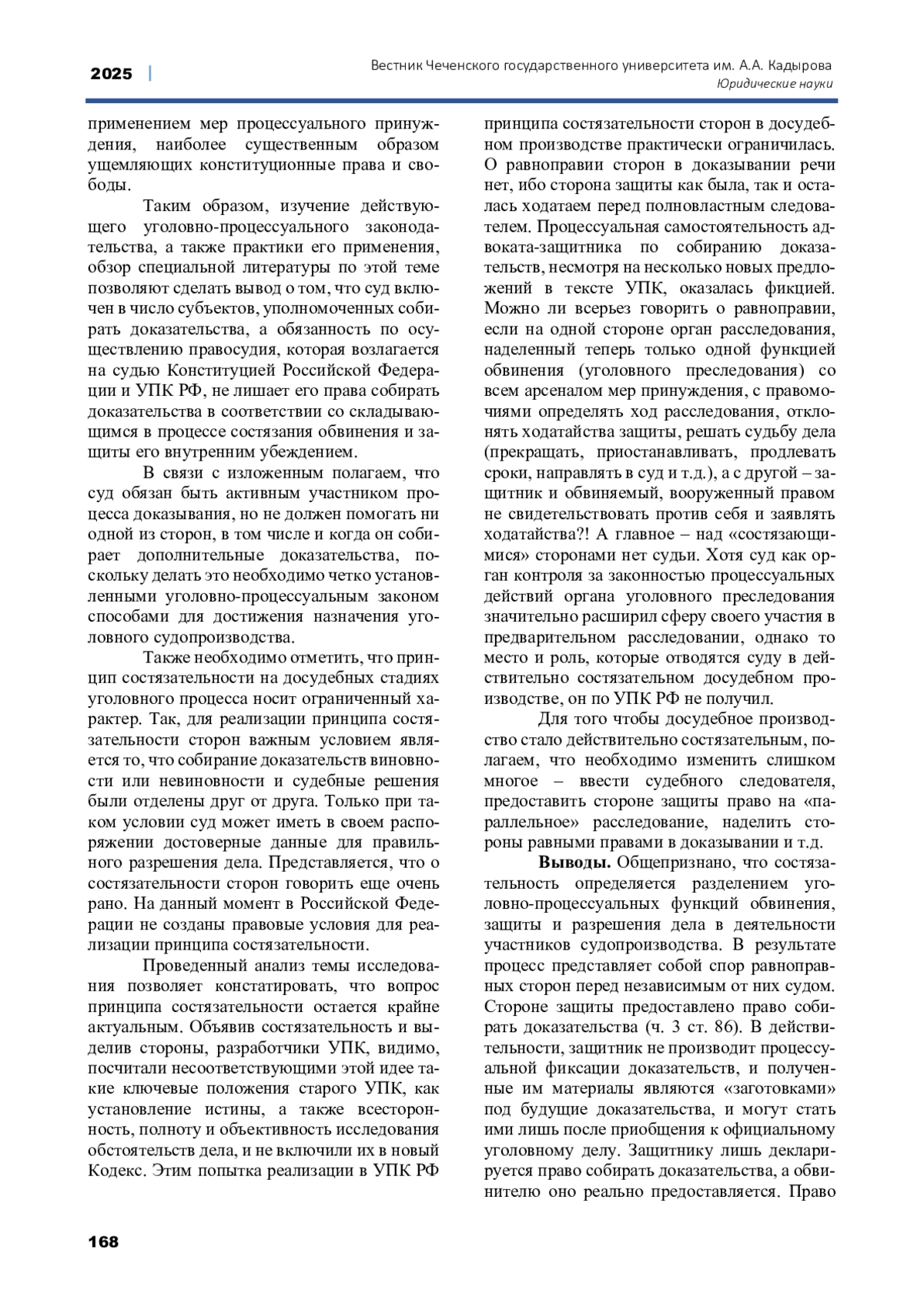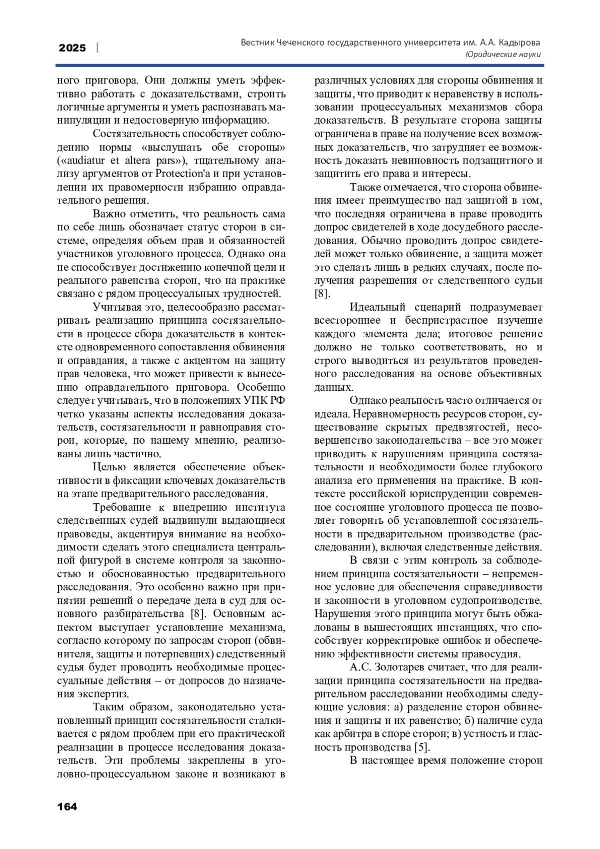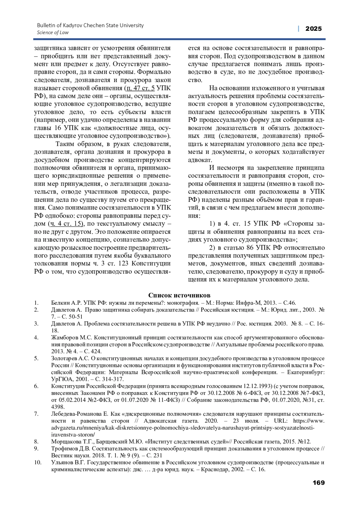 4. Жамборов М.С. Конституционный принцип состязательности как способ аргументированного обоснования правовой позиции сторон в Российском судопроизводстве // Актуальные проблемы российского права. 2013. № 4. - С. 424. EDN: PZNZID