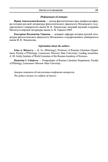 Автор (ы): БЕЛЯЕВА ИРИНА АНАТОЛЬЕВНА, УШАКОВА ЕКАТЕРИНА ИЛЬИНИЧНА