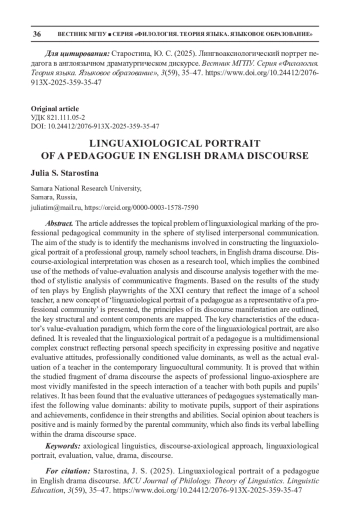 Статья: ЛИНГВОАКСИОЛОГИЧЕСКИЙ ПОРТРЕТ ПЕДАГОГА В АНГЛОЯЗЫЧНОМ ДРАМАТУРГИЧЕСКОМ ДИСКУРСЕ (2025)